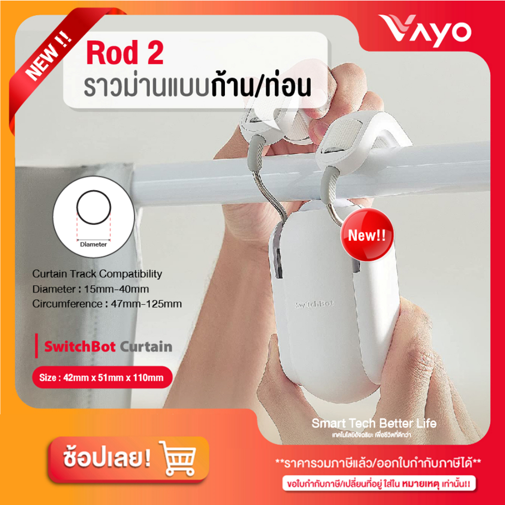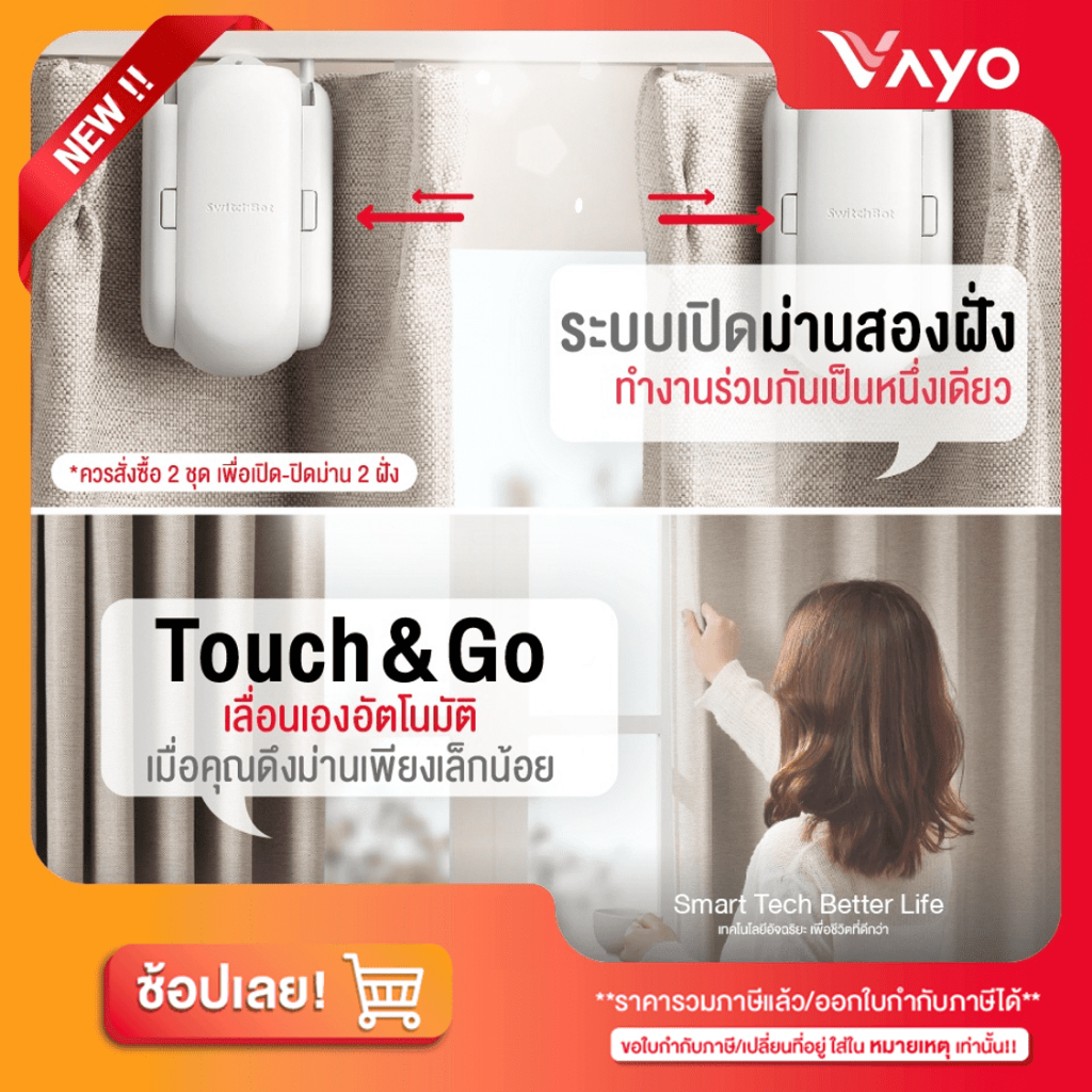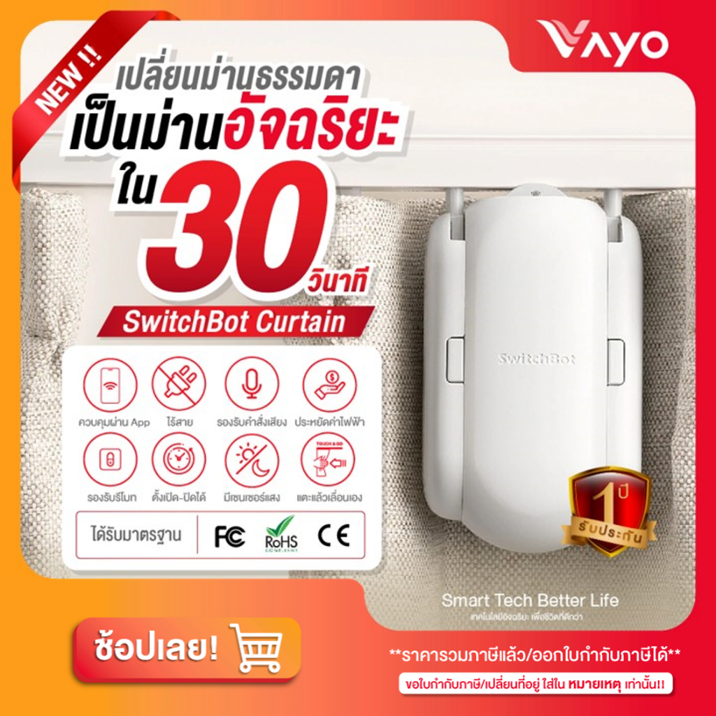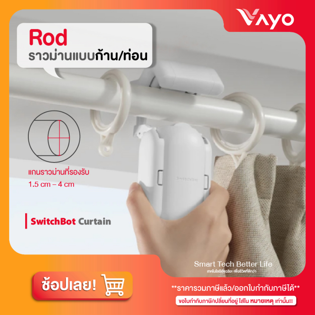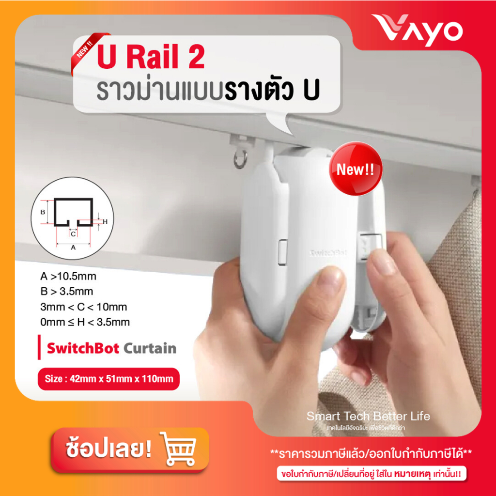 SwitchBot Curtain 2 ม่านอัจฉริยะ เปิด-ปิดผ้าม่านอัตโนมัติ ติดตั้งง่าย รองรับรางทุกแบบ Rod/U-Rail
