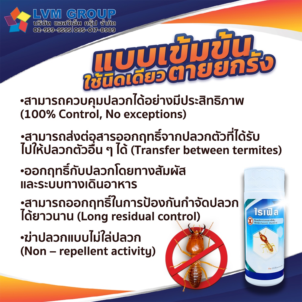 ยากำจัดปลวก ยาฆ่าปลวก กำจัดปลวก ปลวกติดเชื้อตายยกรัง สำหรับใช้ภายในและนอกสถานที่ ไรเฟิล ฟิโพรนิล (Fipronil) 5% W/V SC