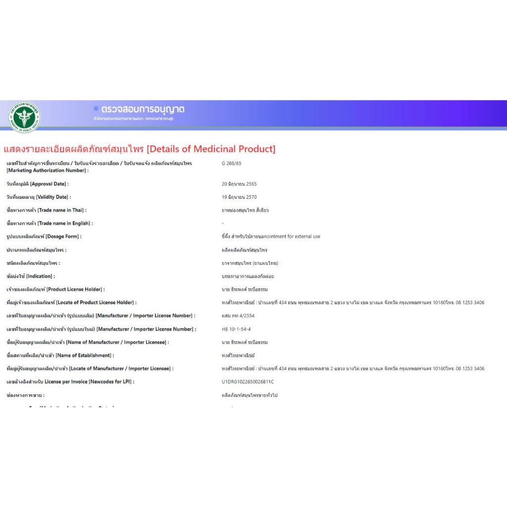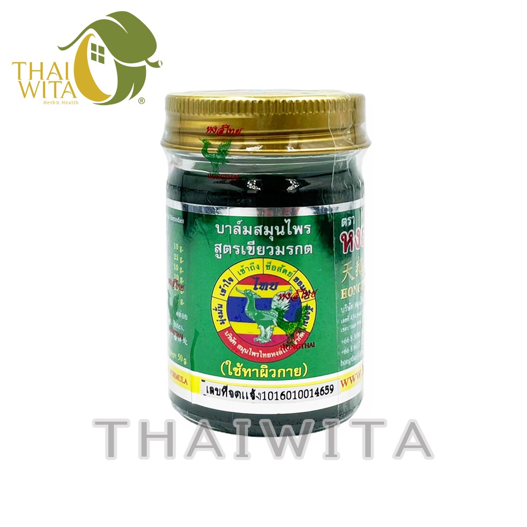 ยาหม่องสมุนไพรหงส์ไทย บาล์มสมุนไพรสูตรเขียวมรกต 50 กรัม