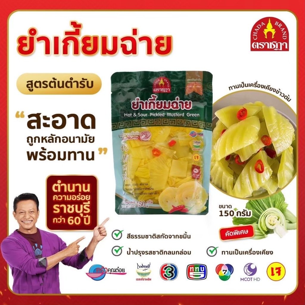 ยำเกี้ยมฉ่าย หั่นชิ้น ตราชฎา 150 กรัม สูตรต้นตำรับ 70 ปี ราชบุรี อร่อย สะอาด พร้อมทานกับข้าวต้ม