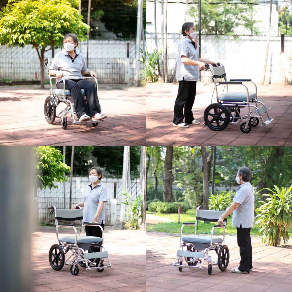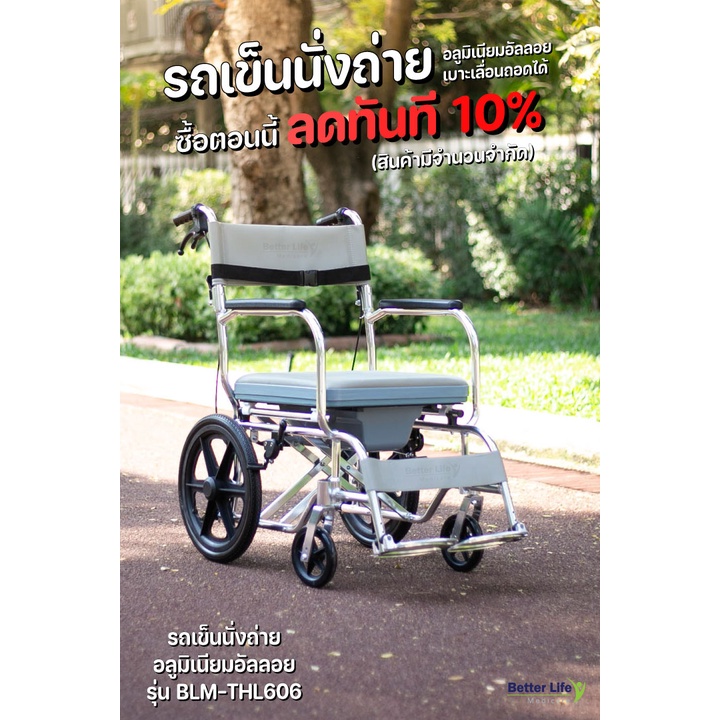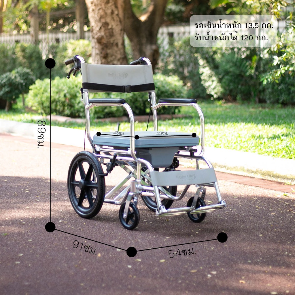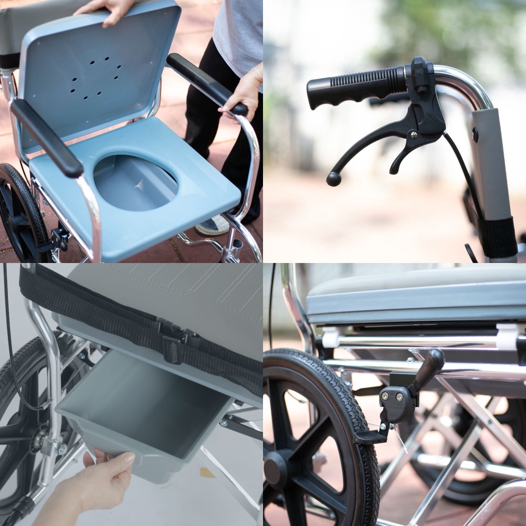 รถเข็นนั่งถ่ายอลูมิเนียมอัลลอย เบาะเปิดได้ พับได้