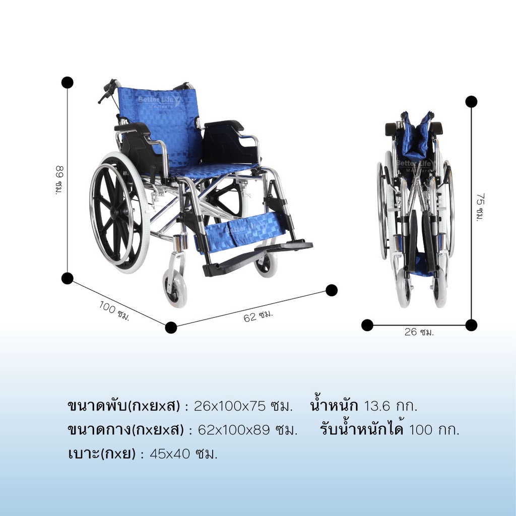 รถเข็นอลูมิเนียมอัลลอย มีเบรค พับได้