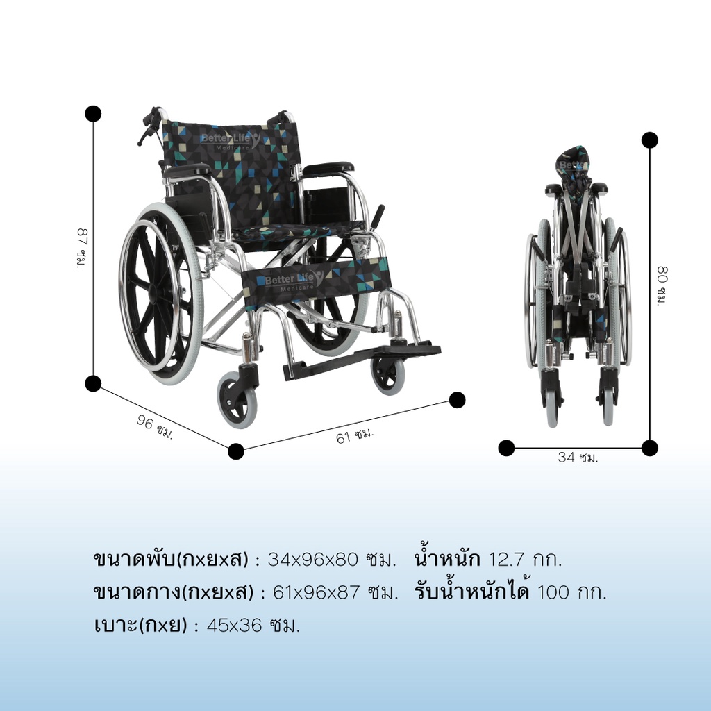 รถเข็นอลูมิเนียม มีเบรค พับได้