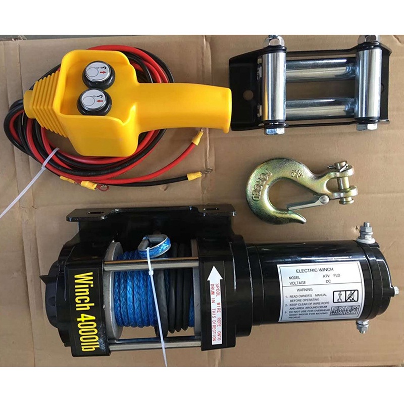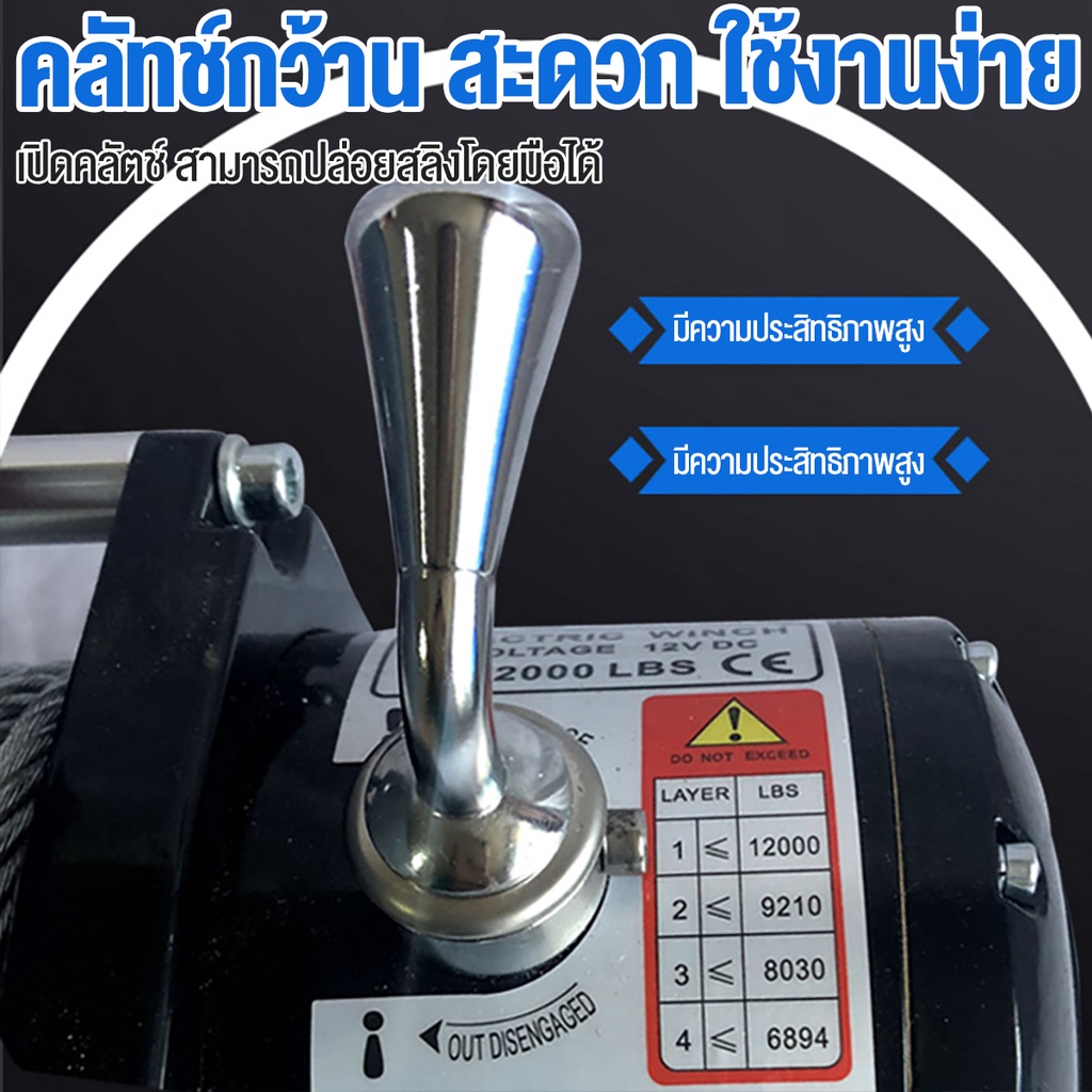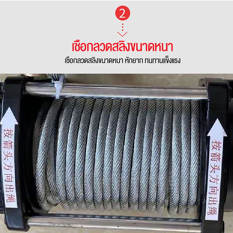 รอกไฟฟ้า 12v รอกสลิงไฟฟ้า 2000 Ibs แรงดึงสูงสุด car electric winch มอเตอร์ ลากได้น้ำหนัก907โล มีรีโมทไร้สาย สลิงยาว8เมตร