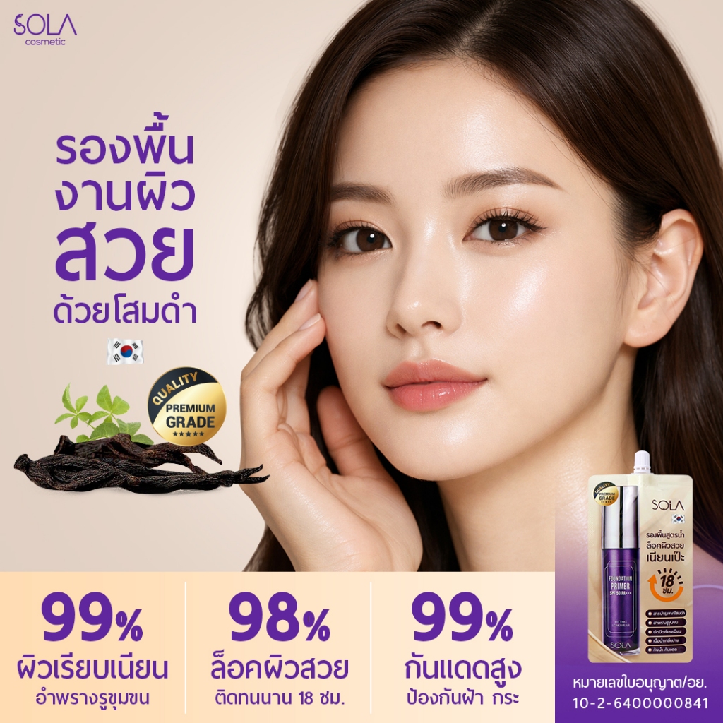 [1 ซอง] โซลา รองพื้นโสม [Sola Foundation Primer] แบบซอง 7 ml.