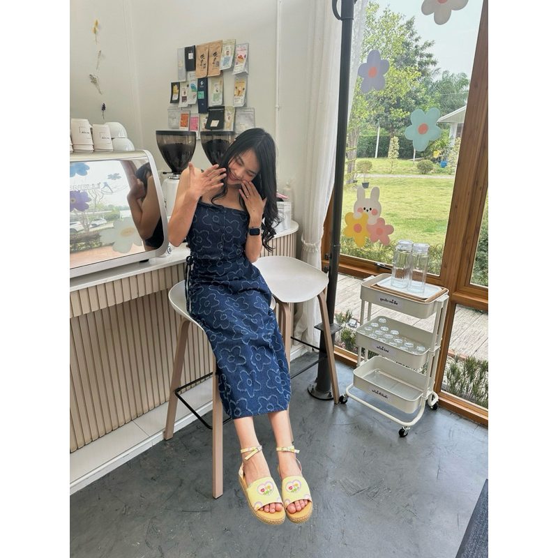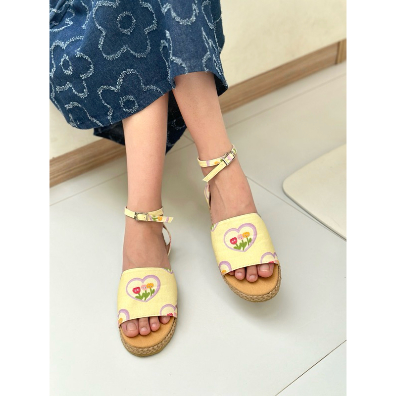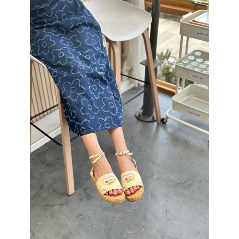 รองเท้าทิวลิปหัวใจสีเหลืองรัดข้อสายปรับได้ความสูง1นิ้ว