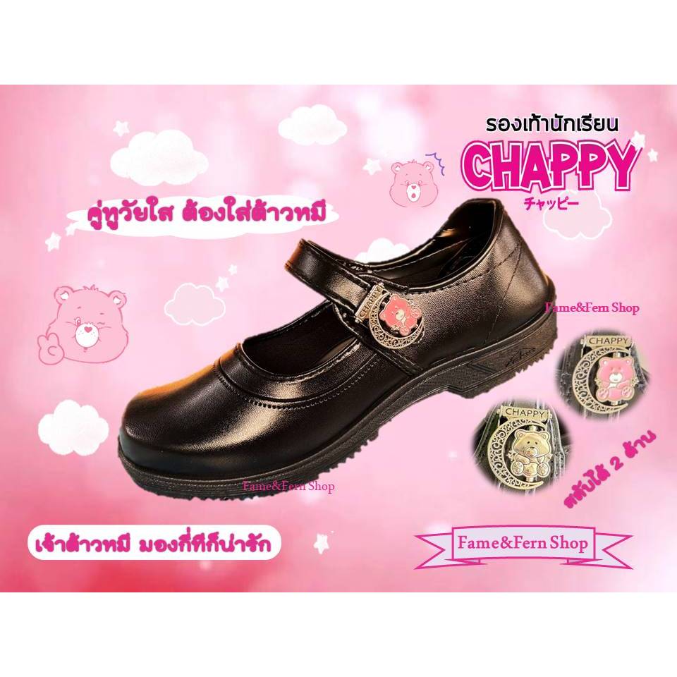 รองเท้านักเรียน Chappy ลายน้องหมี พร้อมส่ง (ใหญ่กว่ายี่ห้ออื่น 1 เซน)