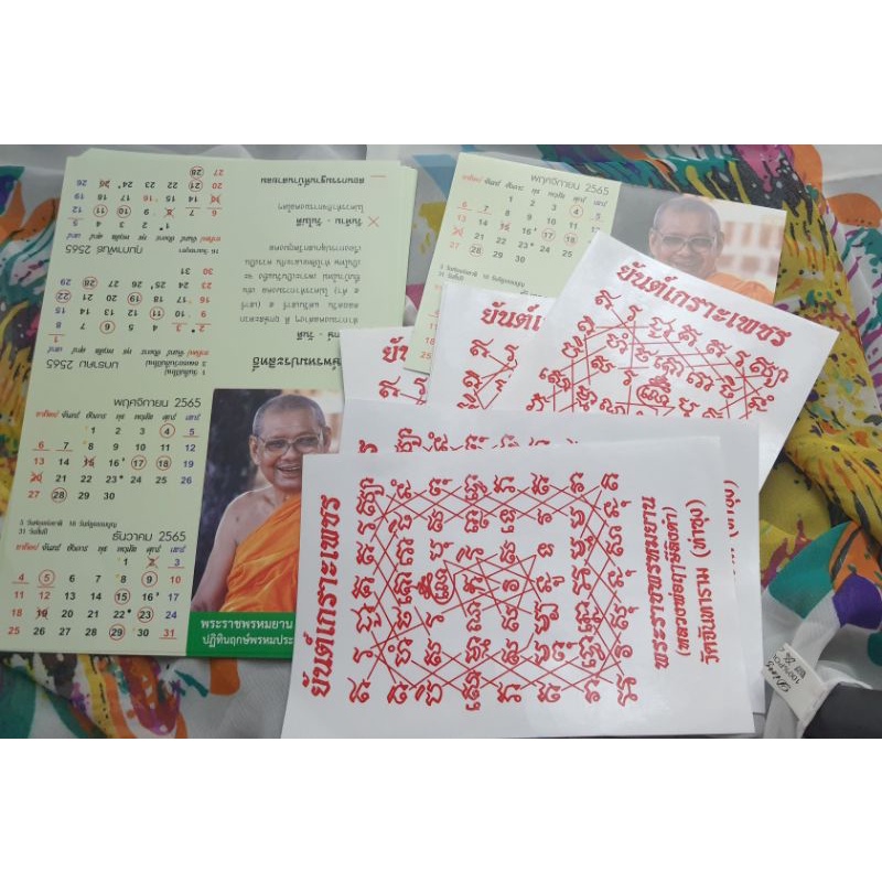 รับ 3 ชิ้น พร้อมส่ง 1สติ๊กเกอร์ยันต์เกราะเพชร วัดท่าซุง ลพ ฤาษีฯ แผ่นใหญ่&ปฏิทินฤกษ์พรหมประสิทธิ์ 2 แผ่น แบบพกพา ปี2568