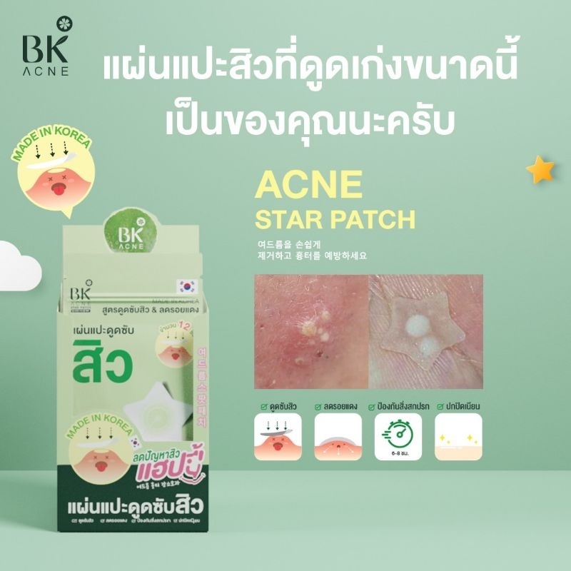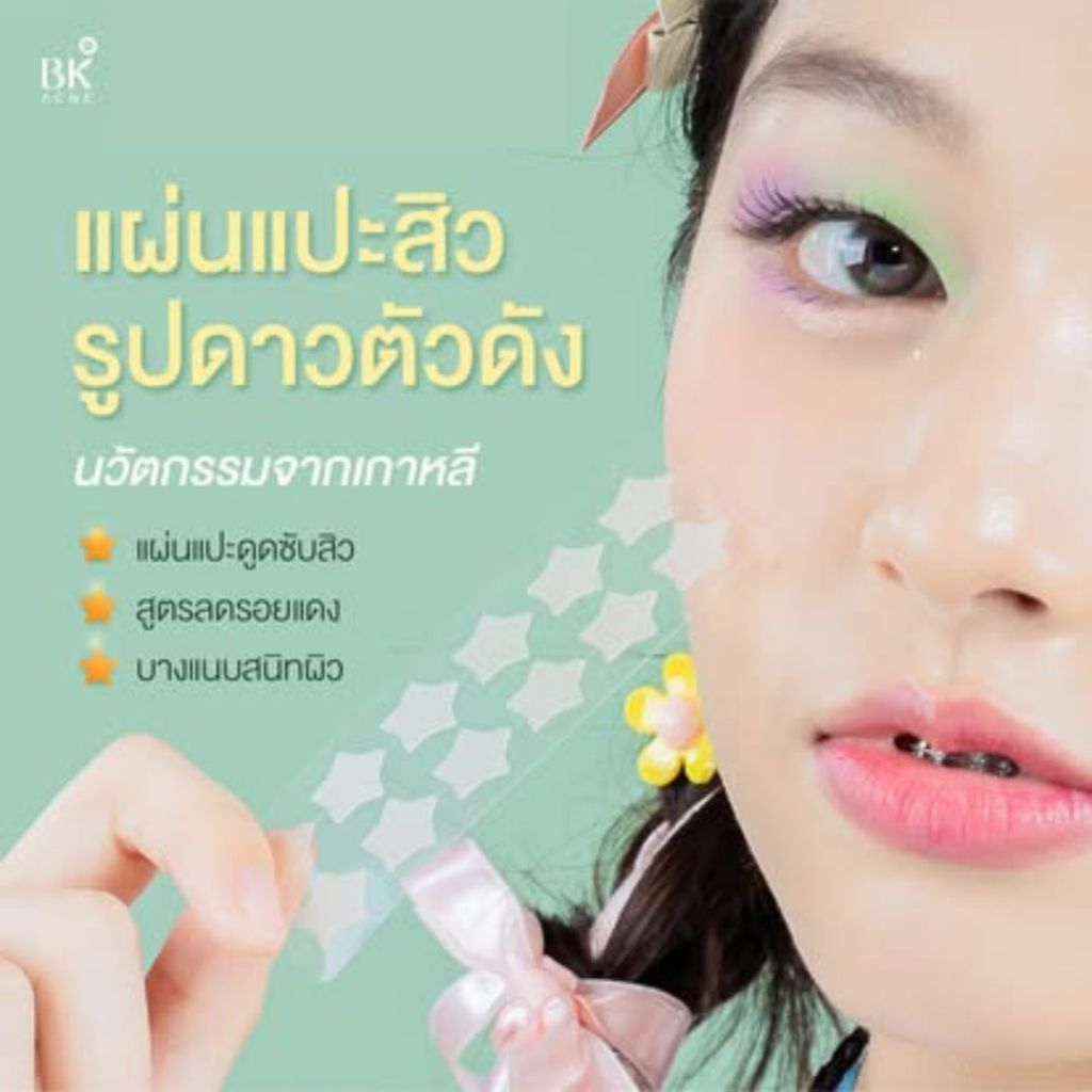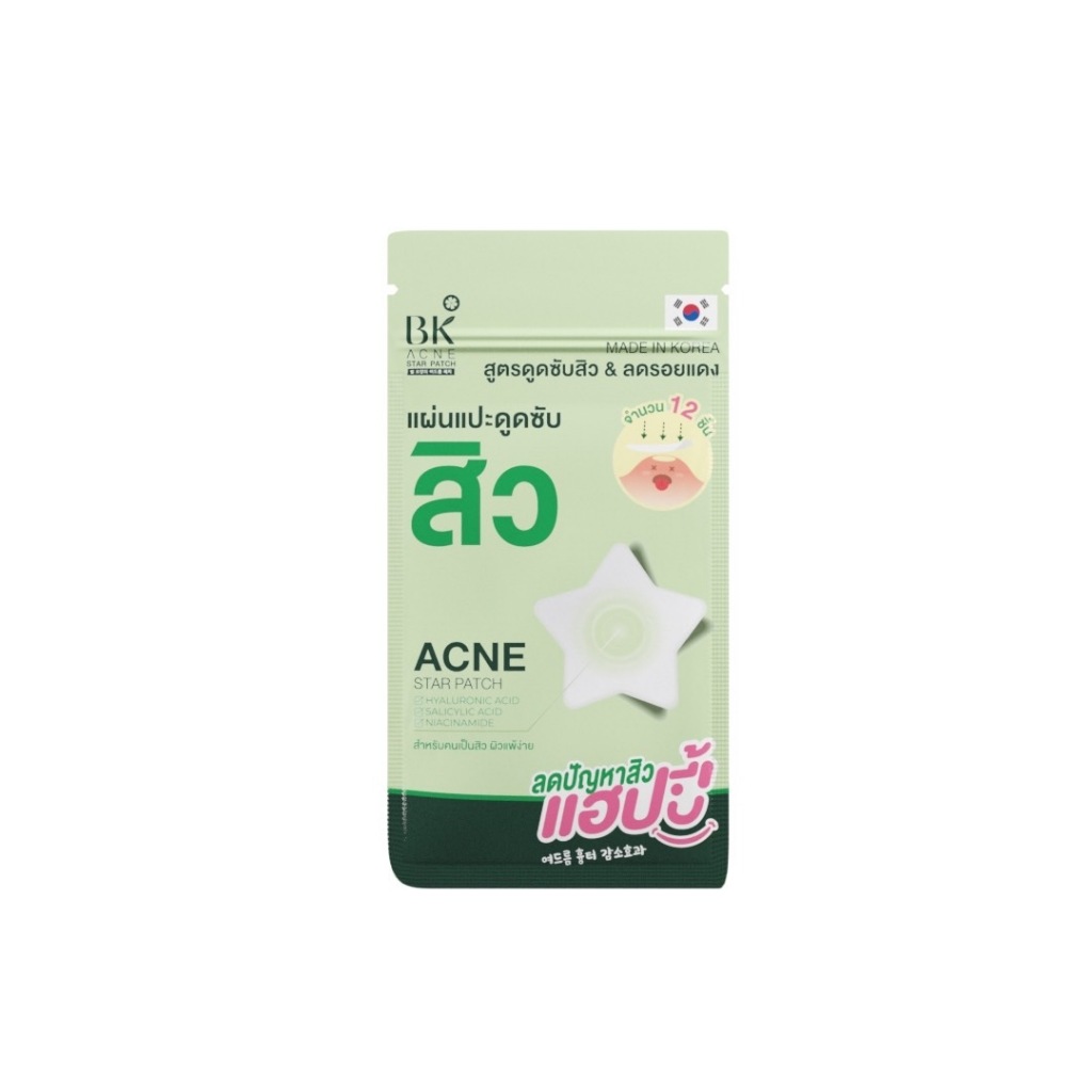 ราคาพิเศษเฉพาะในไลฟ์ BK ACNE STAR PATCH เเผ่นเเปะสิว รูปดาว ขอบบาง กันน้ำ แต่งหน้าเนียน สำหรับคนเป็นสิว ผิวเเพ้ง่าย1ซอง