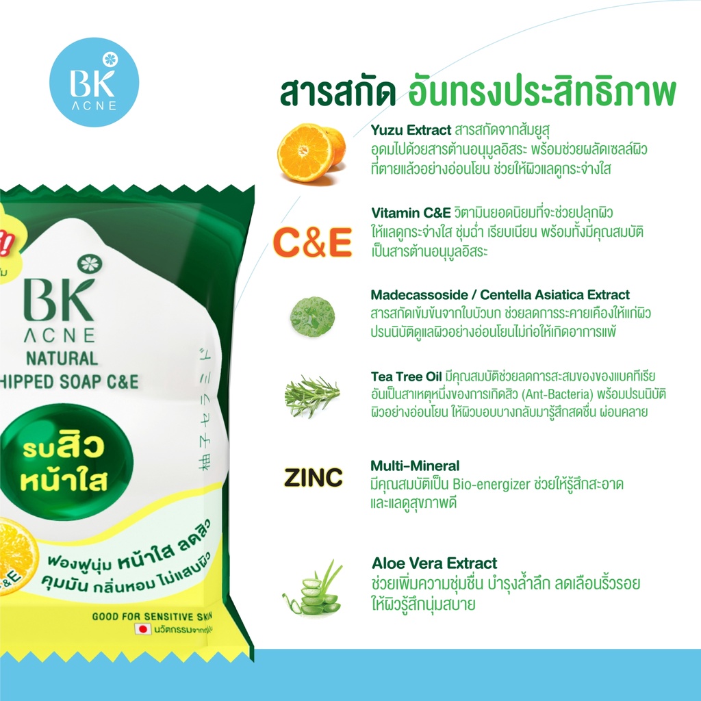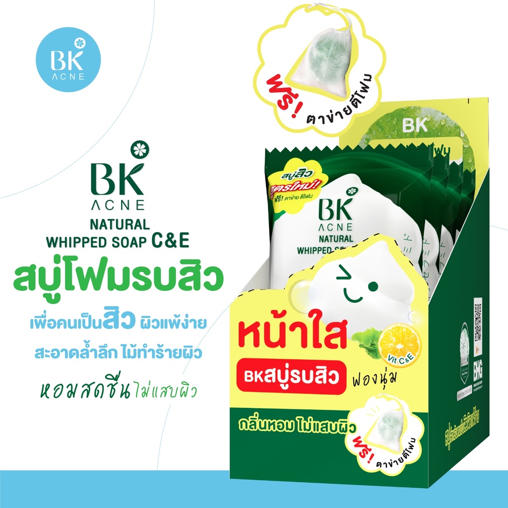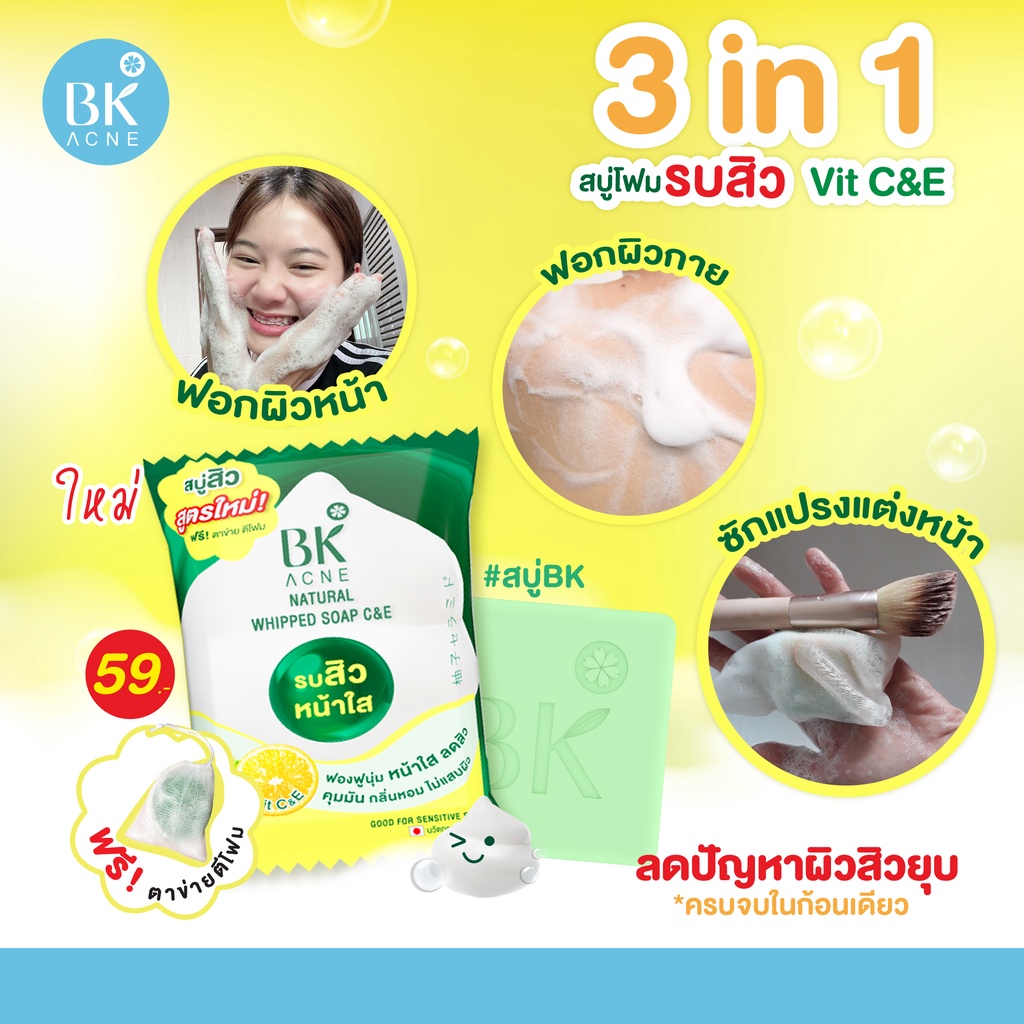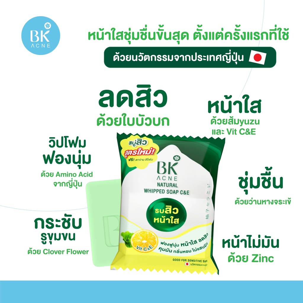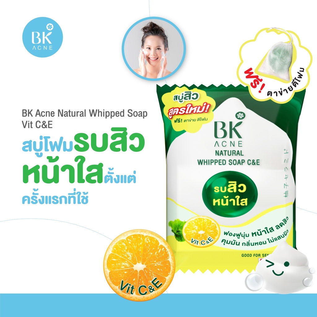ราคาพิเศษเฉพาะในไลฟ์ BK Acne Natural Whipped Soap C&E สบู่สิว รบสิวหน้าใส ฟองโฟมนุ่ม ลดสิวหน้า สิวหลัง คุมมันไม่แห้งตึง