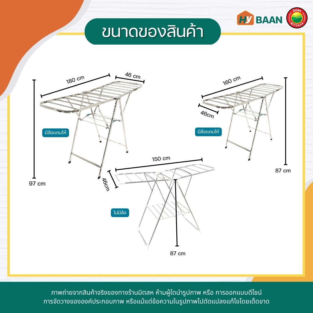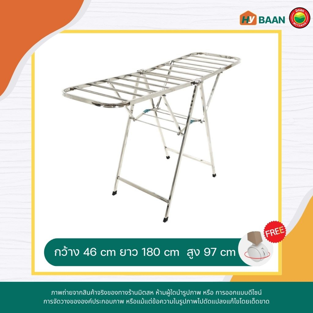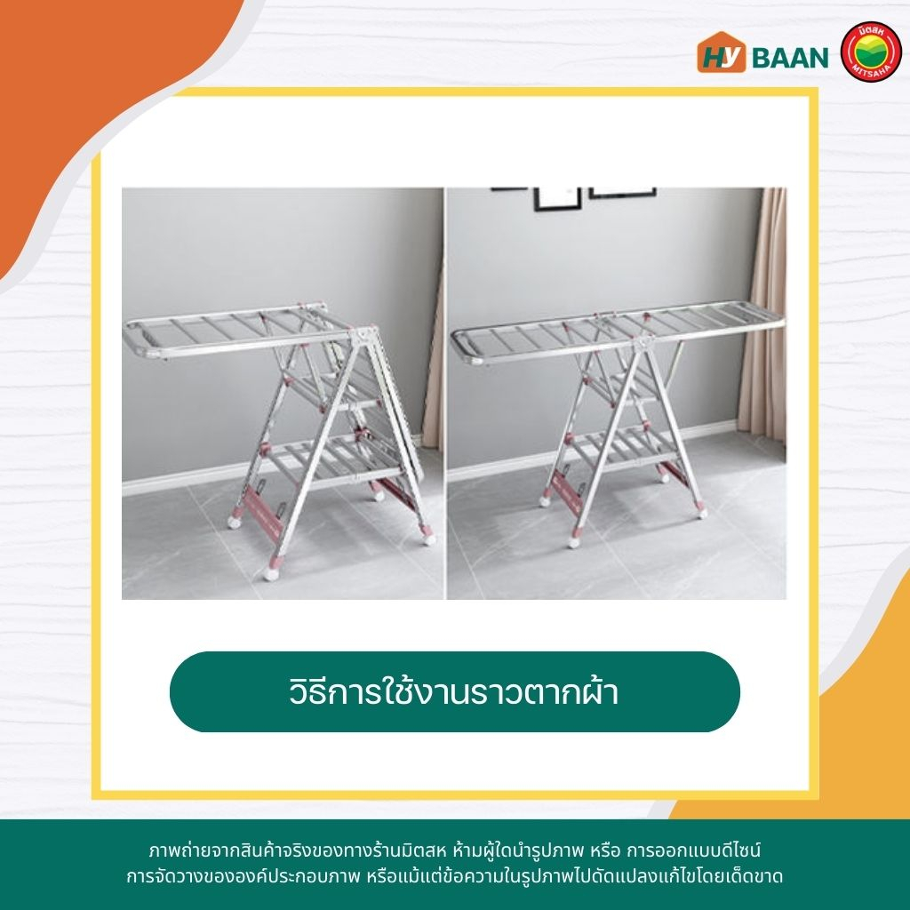 ราวตากผ้าสแตนเลสพับได้ มี 3 ขนาด stainless steel foldable clothes drying rack ราวตาก ที่แขวน เสื้อผ้า มีล้อ มิตสห Hybaan