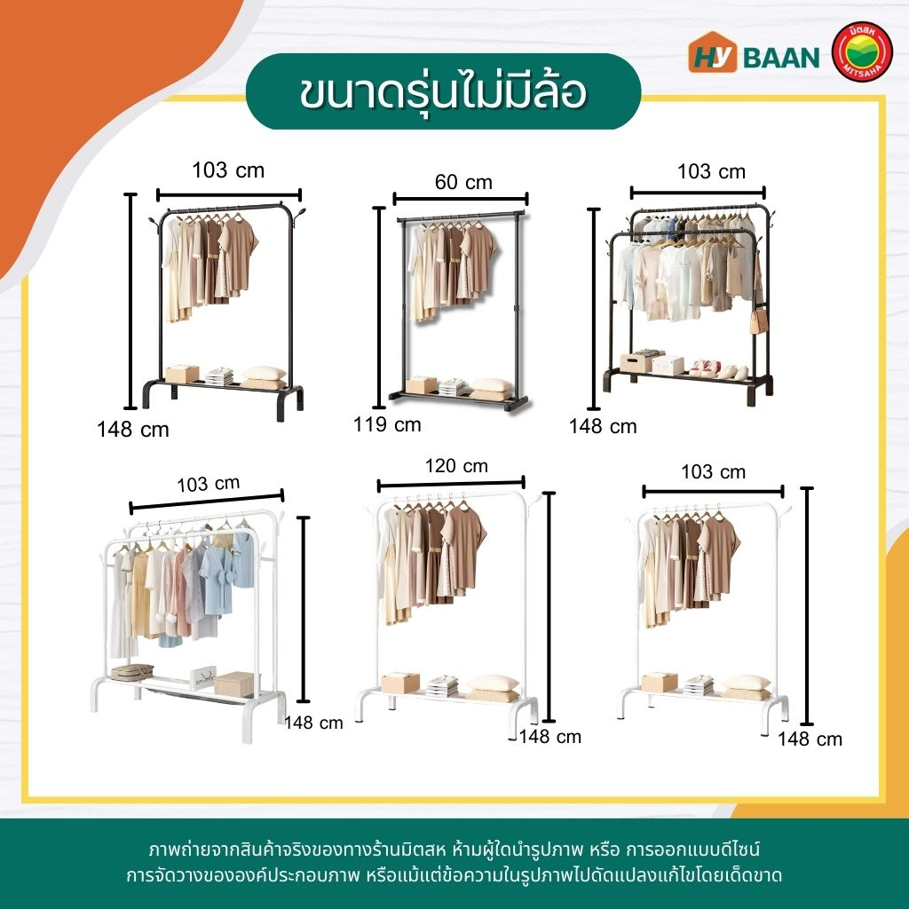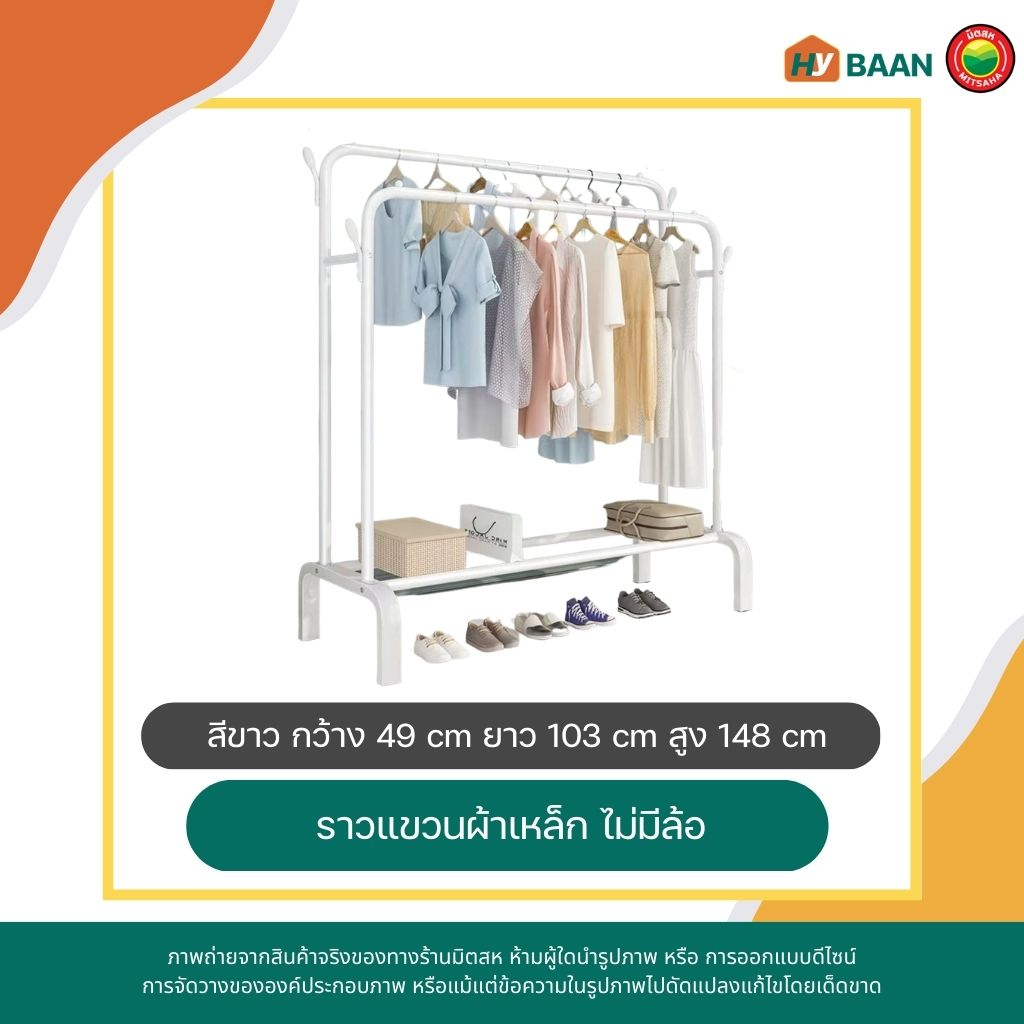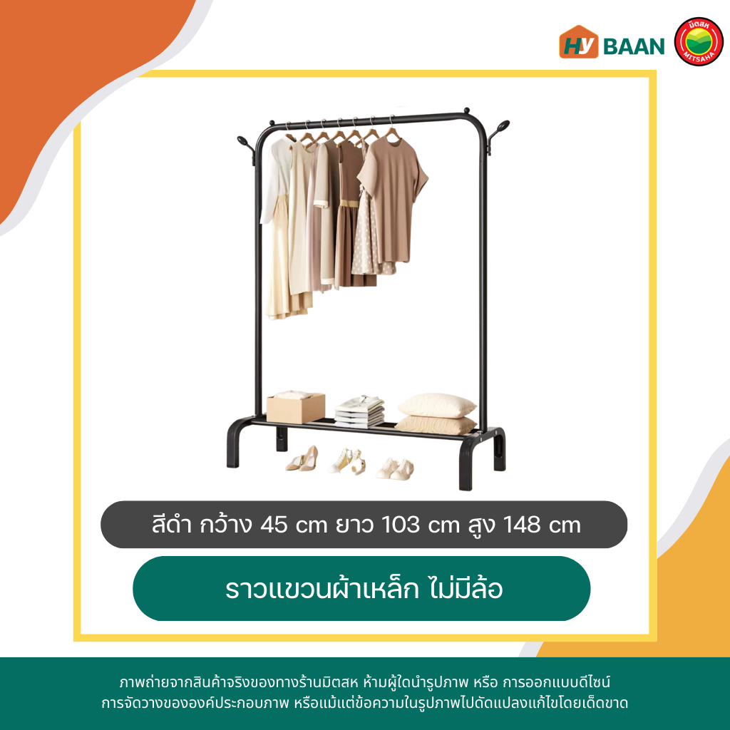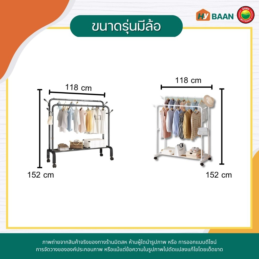 ราวแขวนผ้า Clothes rack มี 2 สี ขาว, ดำ มี 2 แบบ มีล้อ, ไม่มีล้อ ราว เหล็ก แขวน ตาก เสื้อผ้า 2 ชั้น มินิมอล มิตสห Hybaan