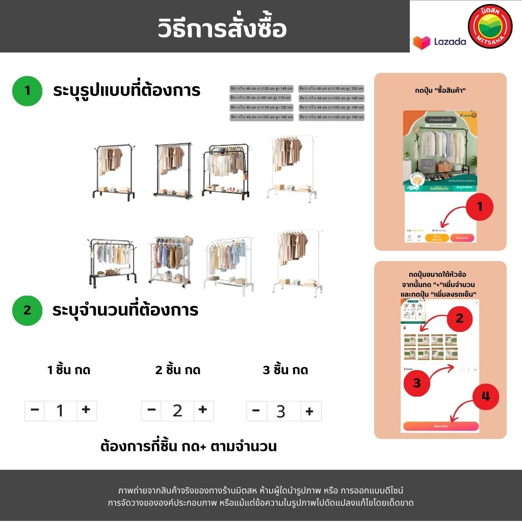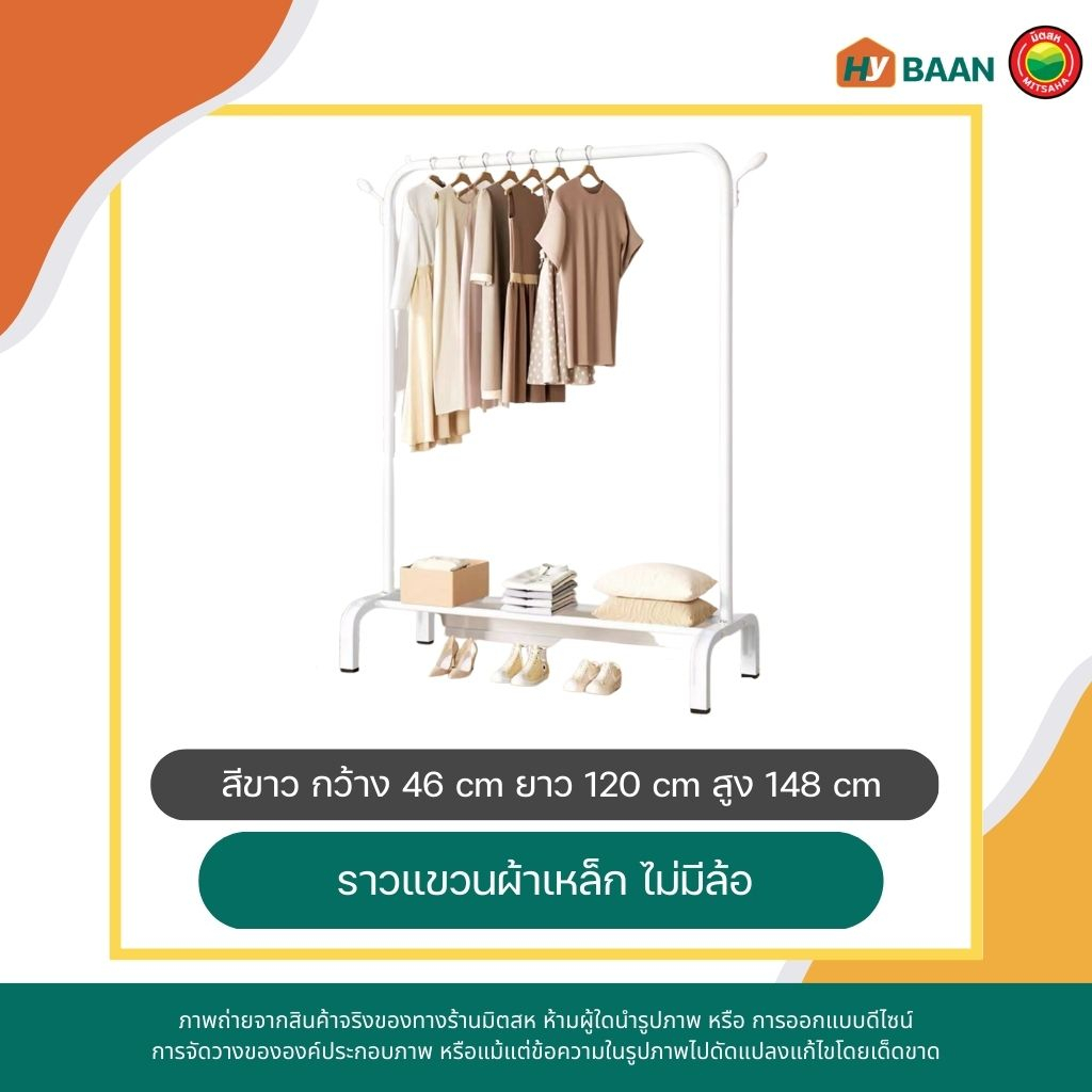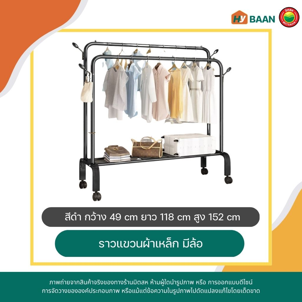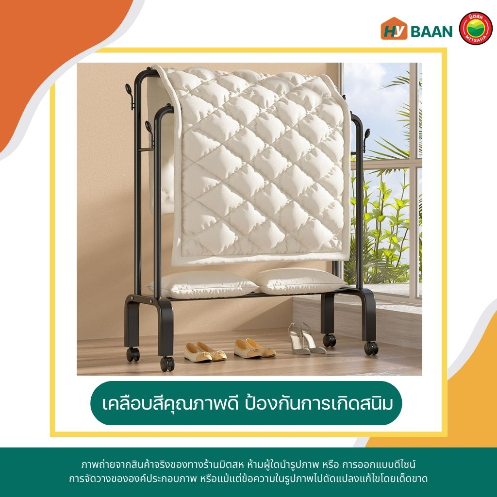 ราวแขวนผ้า Clothes rack มี 2 สี ขาว, ดำ มี 2 แบบ มีล้อ, ไม่มีล้อ ราว เหล็ก แขวน ตาก เสื้อผ้า 2 ชั้น มินิมอล มิตสห Hybaan