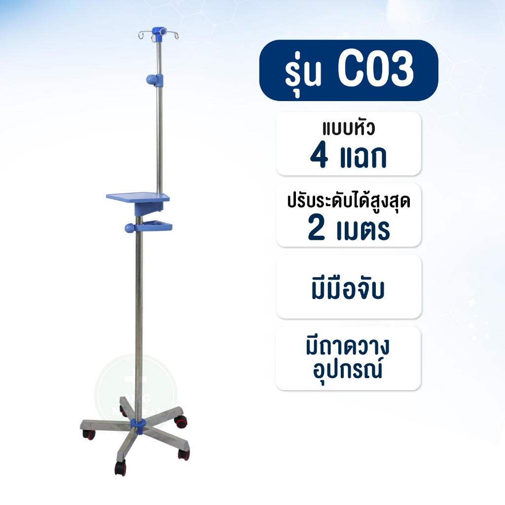 รุ่นพิเศษ เสาน้ำเกลือ เสริมอุปกรณ์ มือจับ วางของได้ วัสดุแสตนเลส ปรับได้ 2 เมตร I.V. Pole Stainless เกรดโรงพยาบาล คลินิค