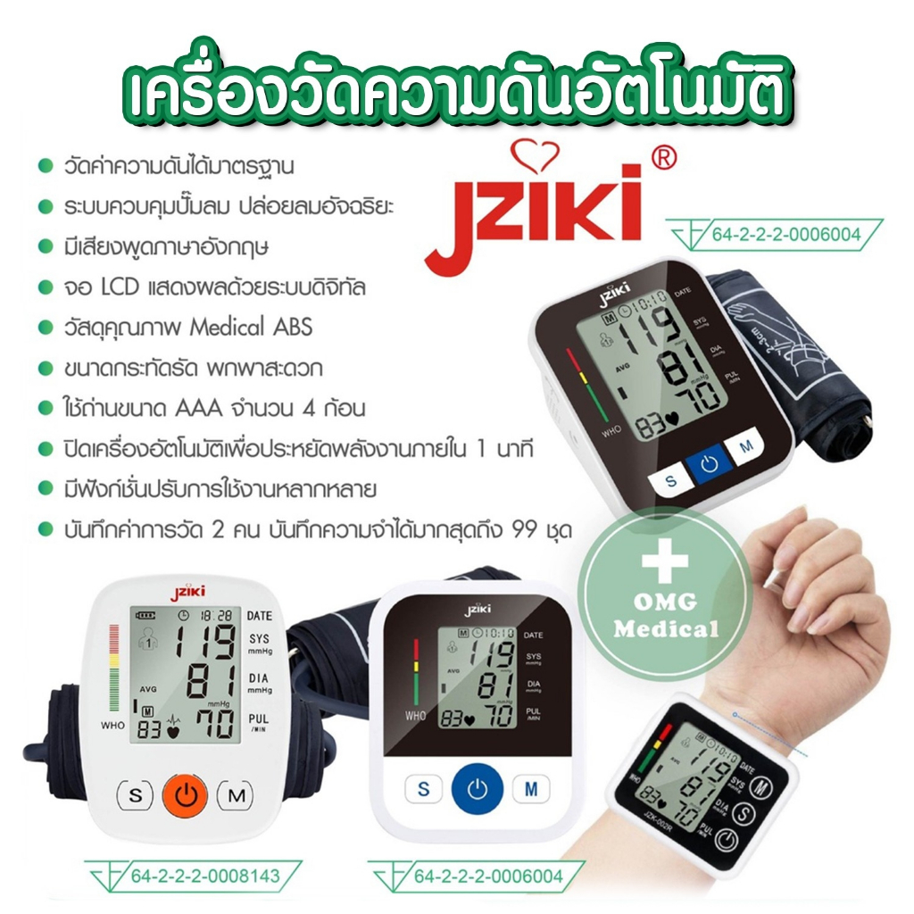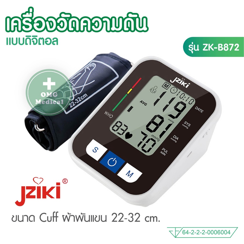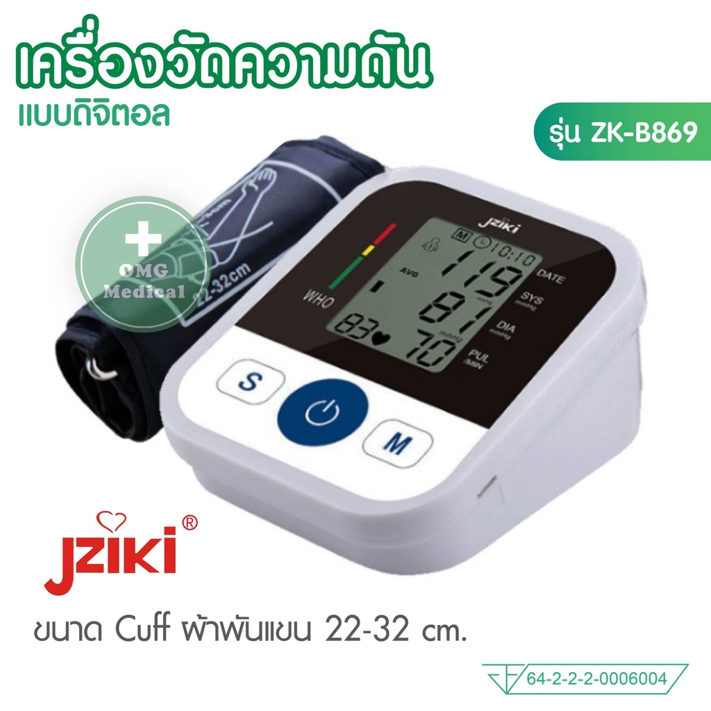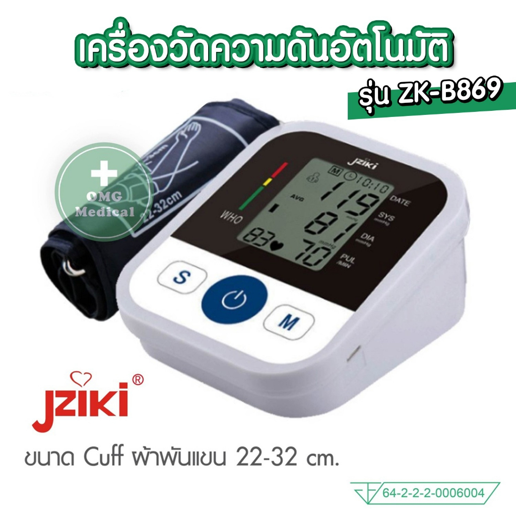 อย.ไทย เครื่องวัดความดัน JZIKI ประกันศูนย์ 2 ปี (ไม่ใช่เครื่องหิ้ว) วัดต้นแขน ข้อมือ รุ่น ZK-B869 ZK-B872, ZK-W863 BP