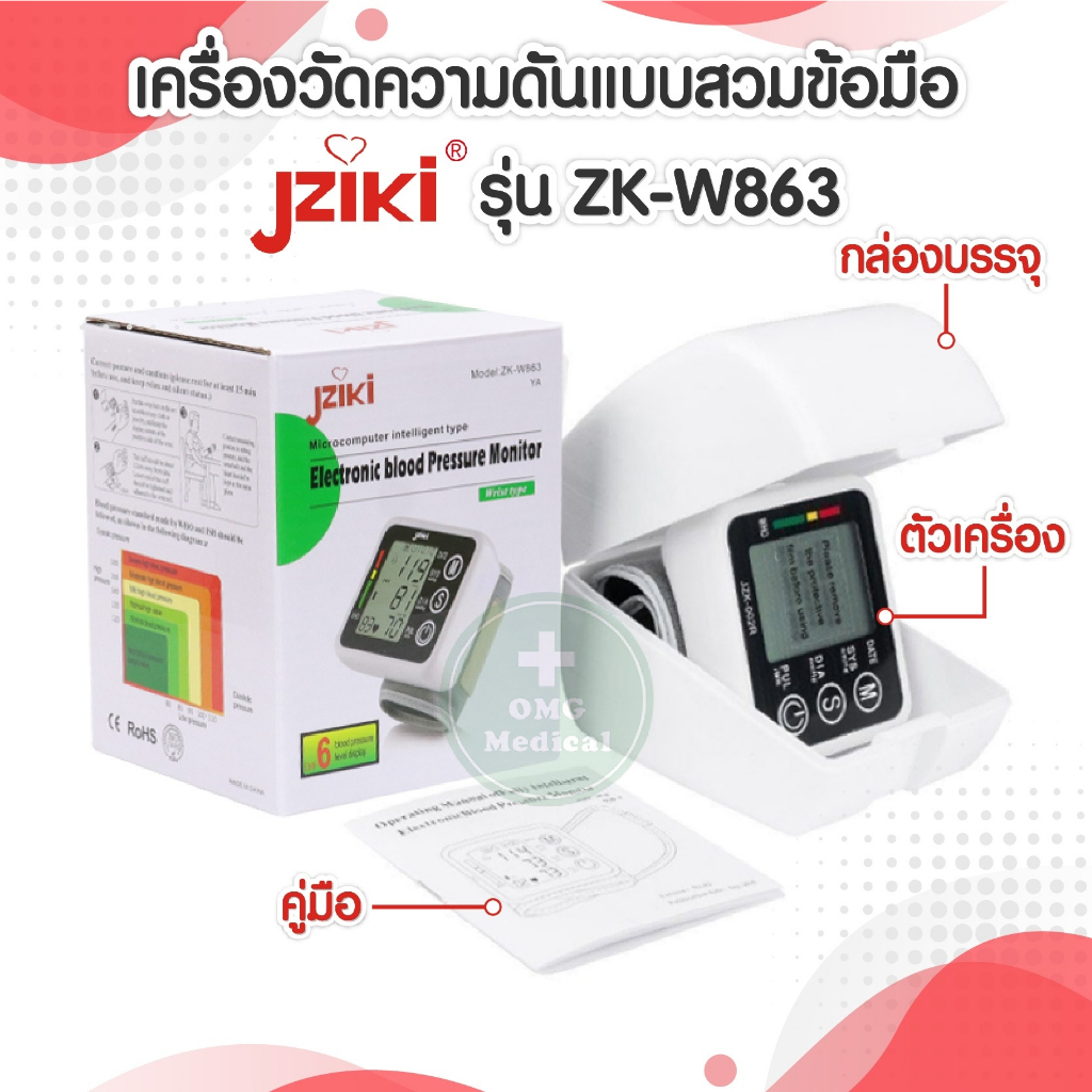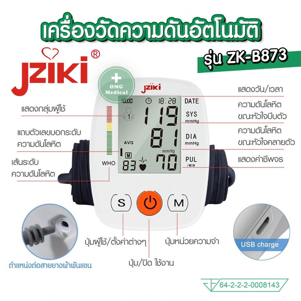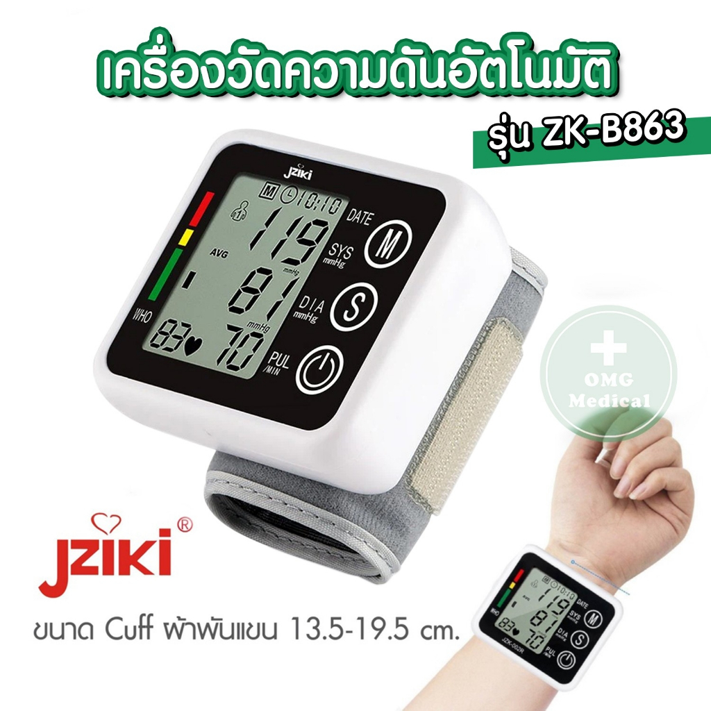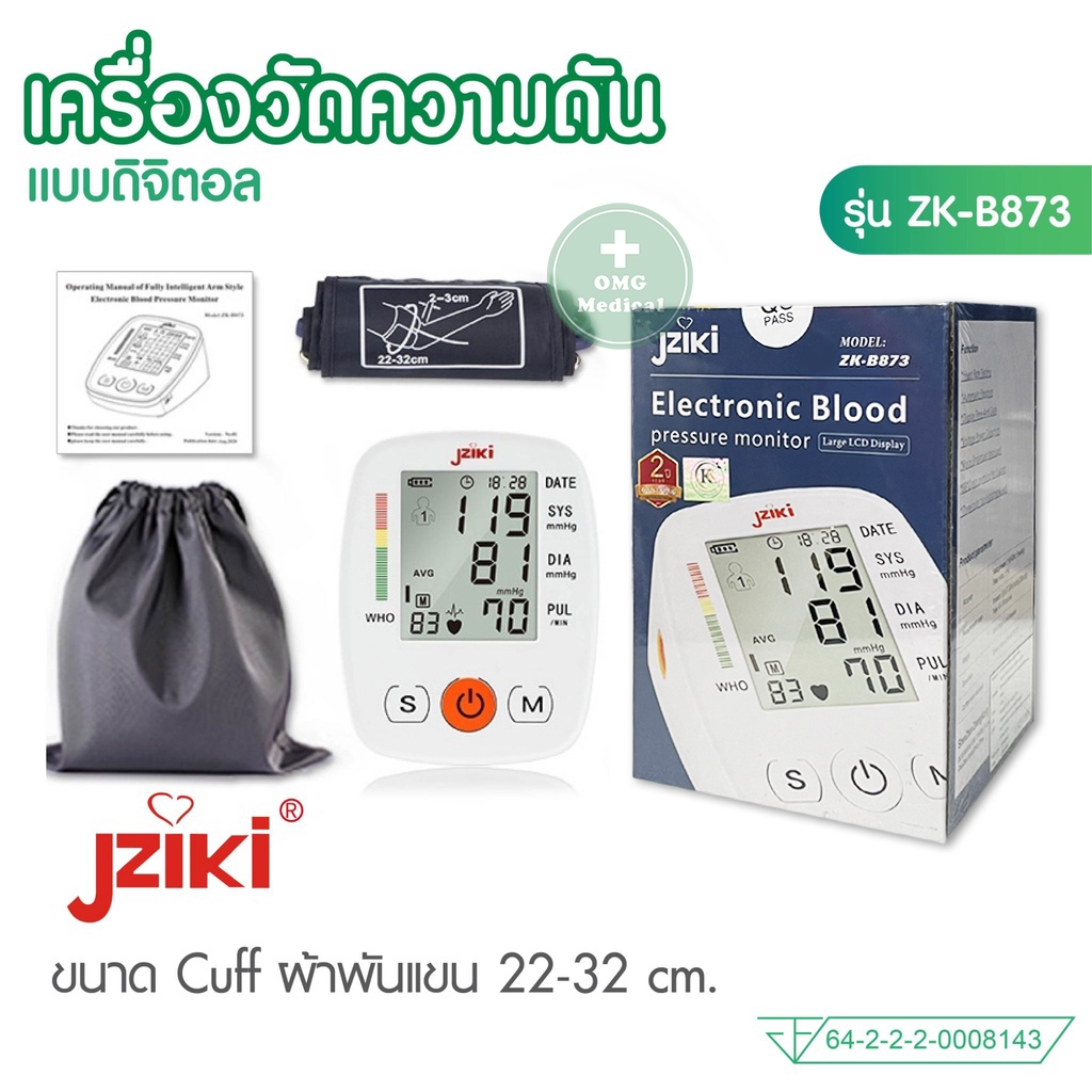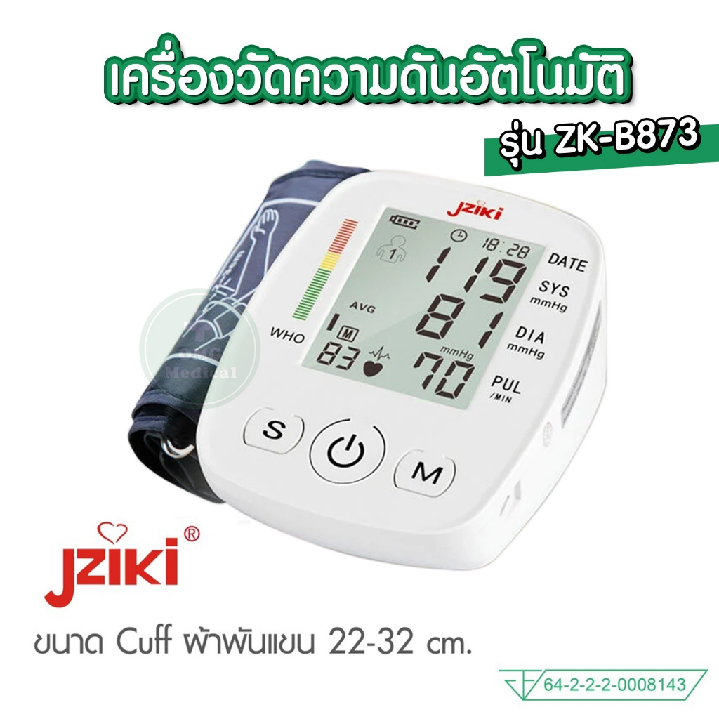 อย.ไทย เครื่องวัดความดัน JZIKI ประกันศูนย์ 2 ปี (ไม่ใช่เครื่องหิ้ว) วัดต้นแขน ข้อมือ รุ่น ZK-B869 ZK-B872, ZK-W863 BP