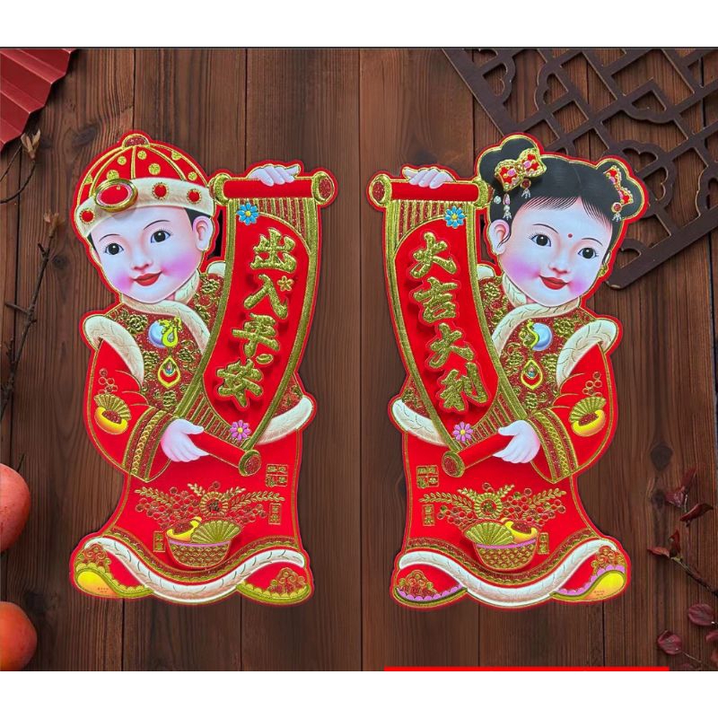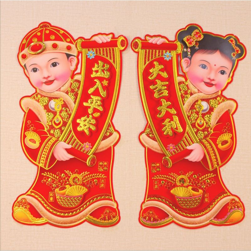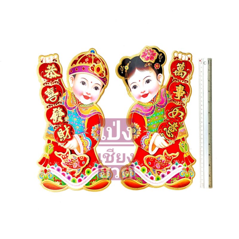 รูปเด็กอวยพรตรุษจีน ติดหน้าประตูบ้าน ตุ้ยเลี้ยง ตุ้ยเหลียน เด็กมงคล (ราคาต่อคู่)