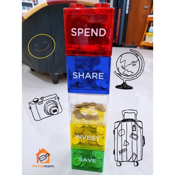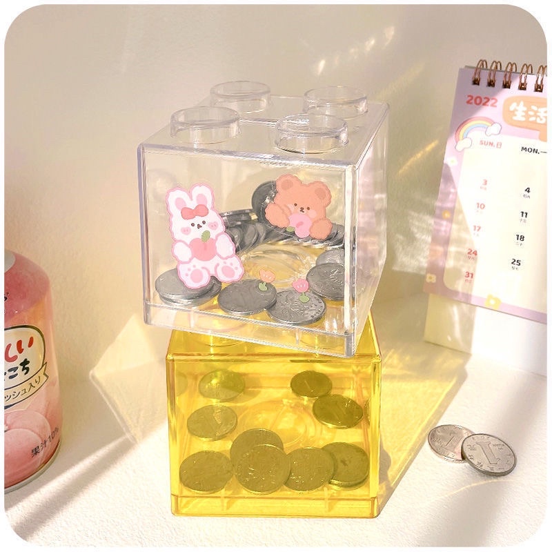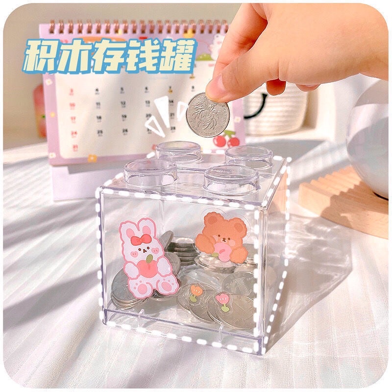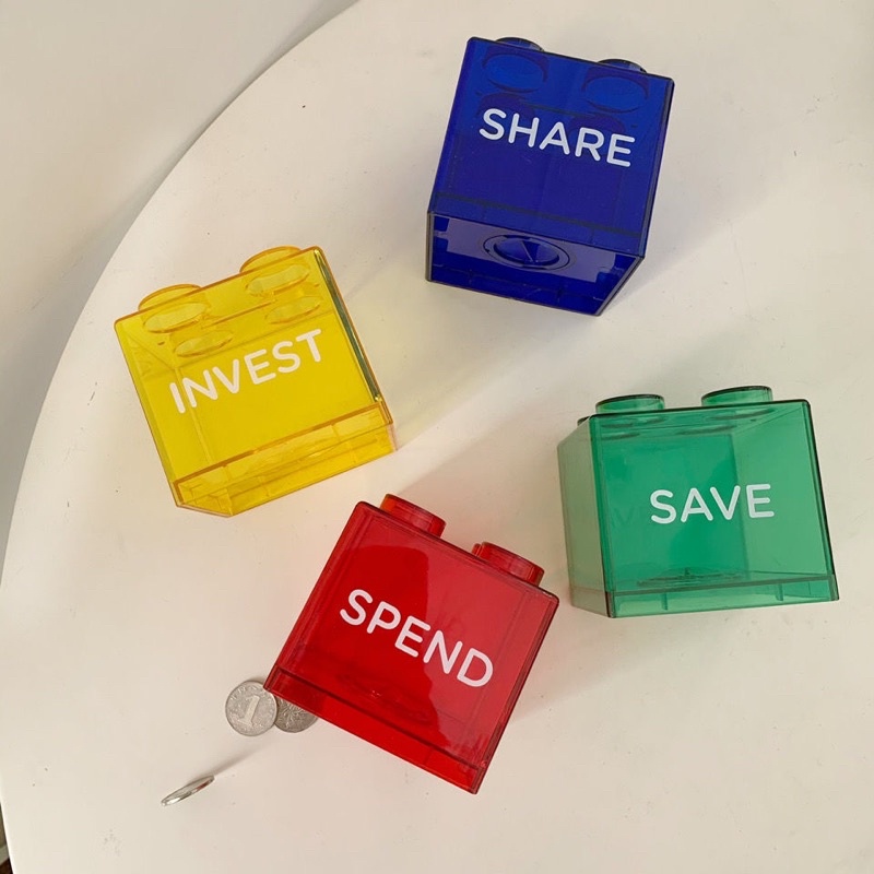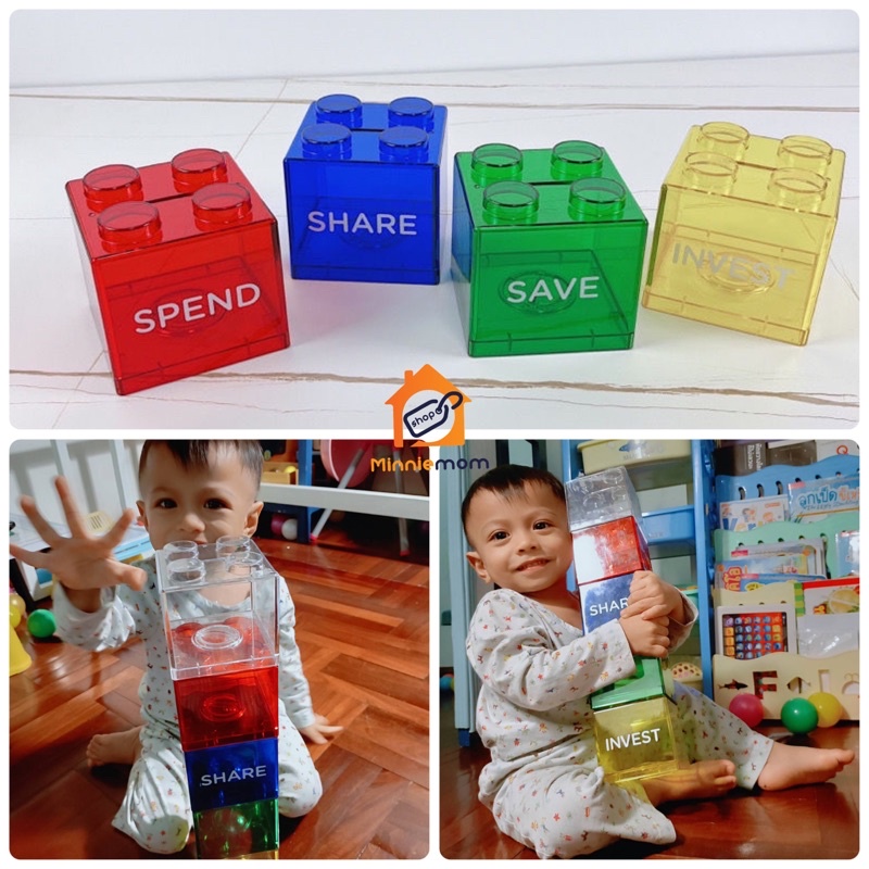 มีส่งด่วนพื้นที่ กทม🌈ออมสินบล็อคตัวต่อสกรีนข้อความ Block Saving หยอดเหรียญ หยอดแบงก์ ต่อกันได้ ตกแต่งบ้าน เลโก้ แจกเด็ก