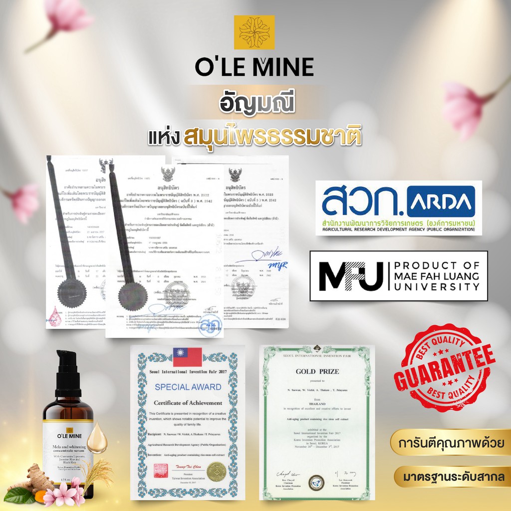 ลดฝ้า O‘lemine serum เซรั่มเข้มข้น เซรั่มขมิ้น กระ จุดด่างดำ ลดสิว ผิวติดสาร ขนาด 40 ml โอเลอมายน์