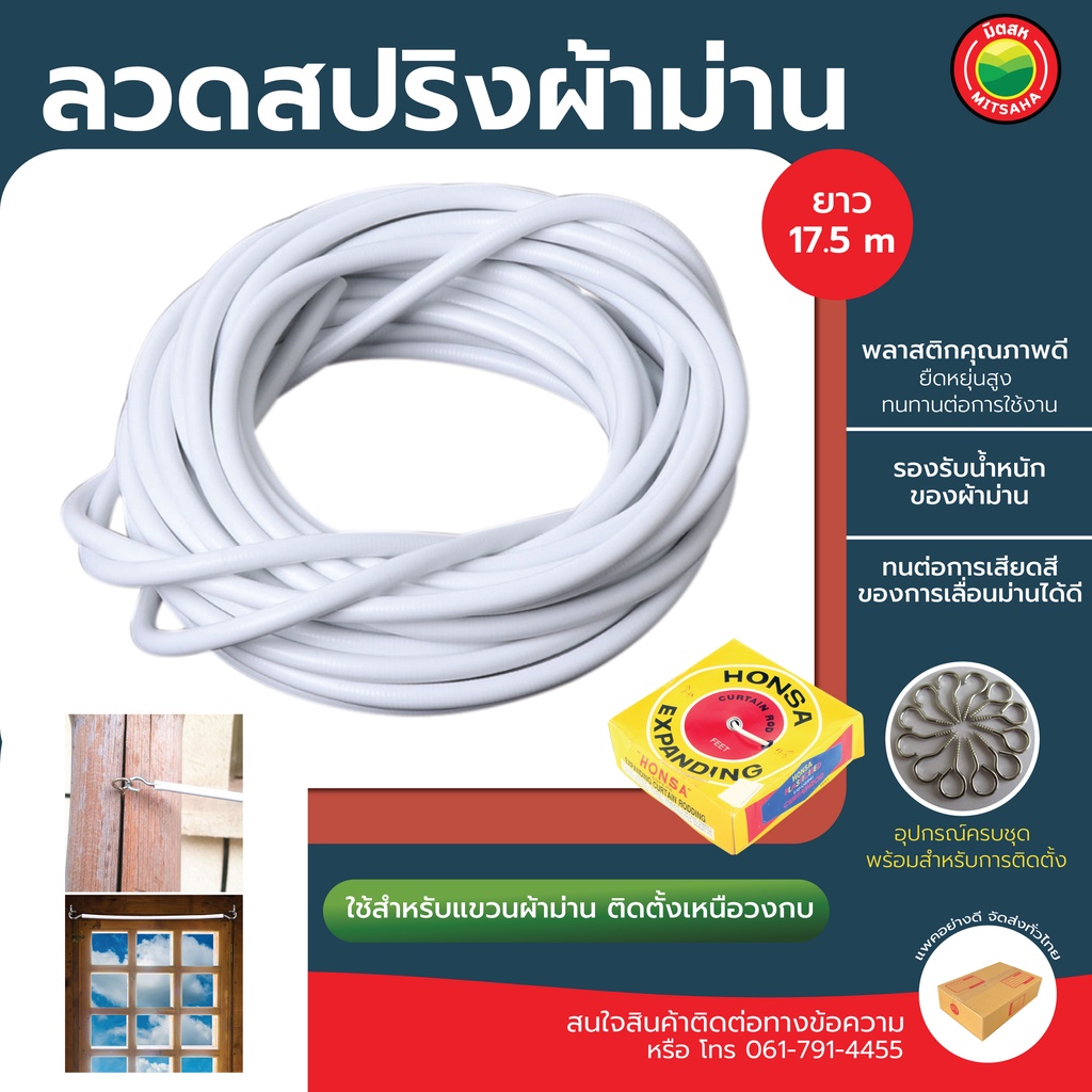 ลวดสปริงผ้าม่าน ความยาว 17.5mต่อกล่อง สีขาว CURTAIN WIRE ลวด สปริง ผ้าม่าน ขึง แขวน ใส่ สลิง หน้าต่าง ตะขอ มิตสห Mitsaha