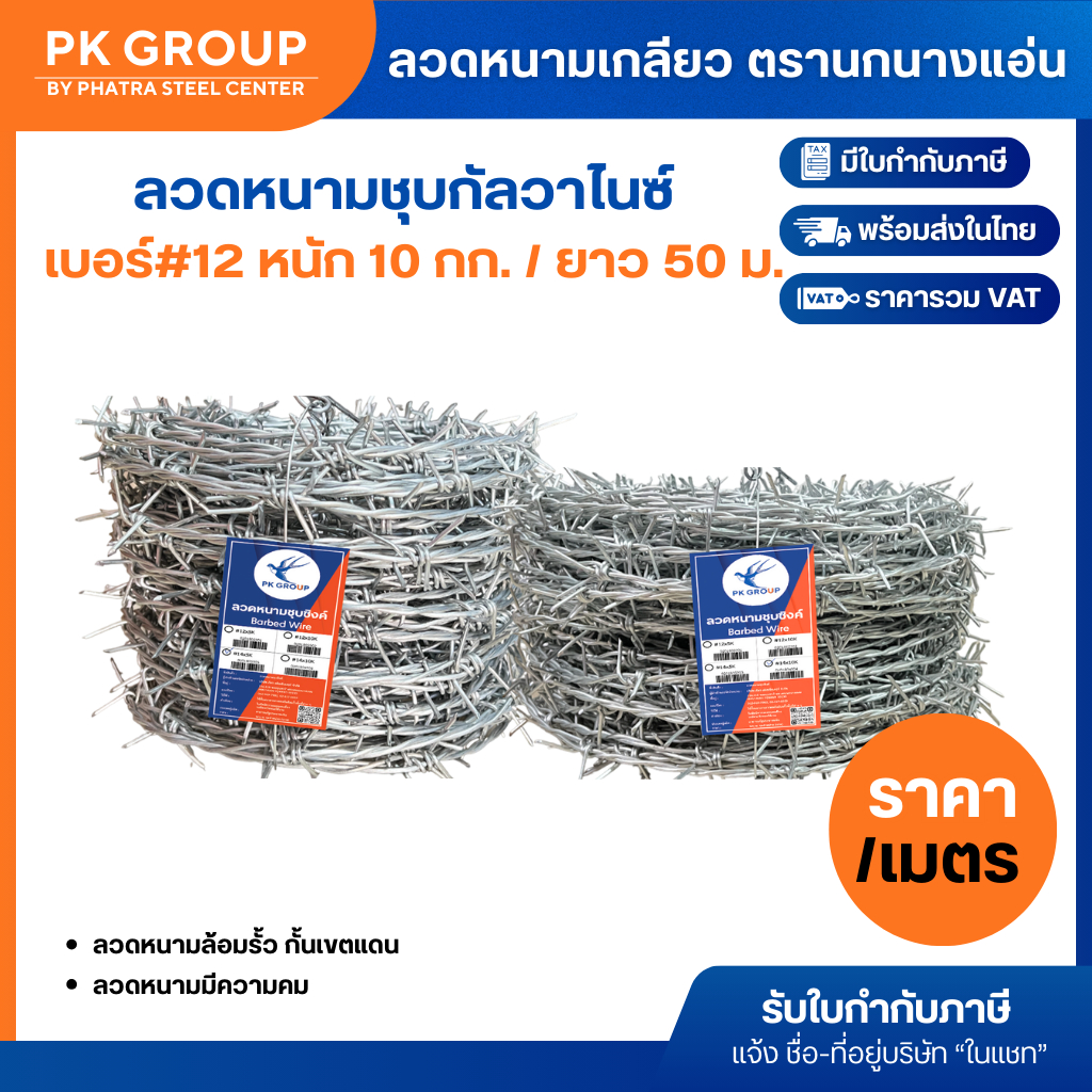 ลวดหนาม เบอร์ 12 น้ำหนัก 10 กก. ยาว 50 เมตร (1 ม้วน)