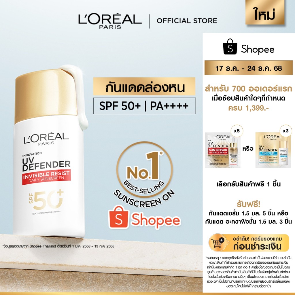 ลอรีอัล ปารีส L'Oréal Paris UV Defender Invisible Resist SPF50+ PA++++ 50ml กันแดดล่องหน บางเบา เกลี่ยง่าย ไม่เหนอะหนะ