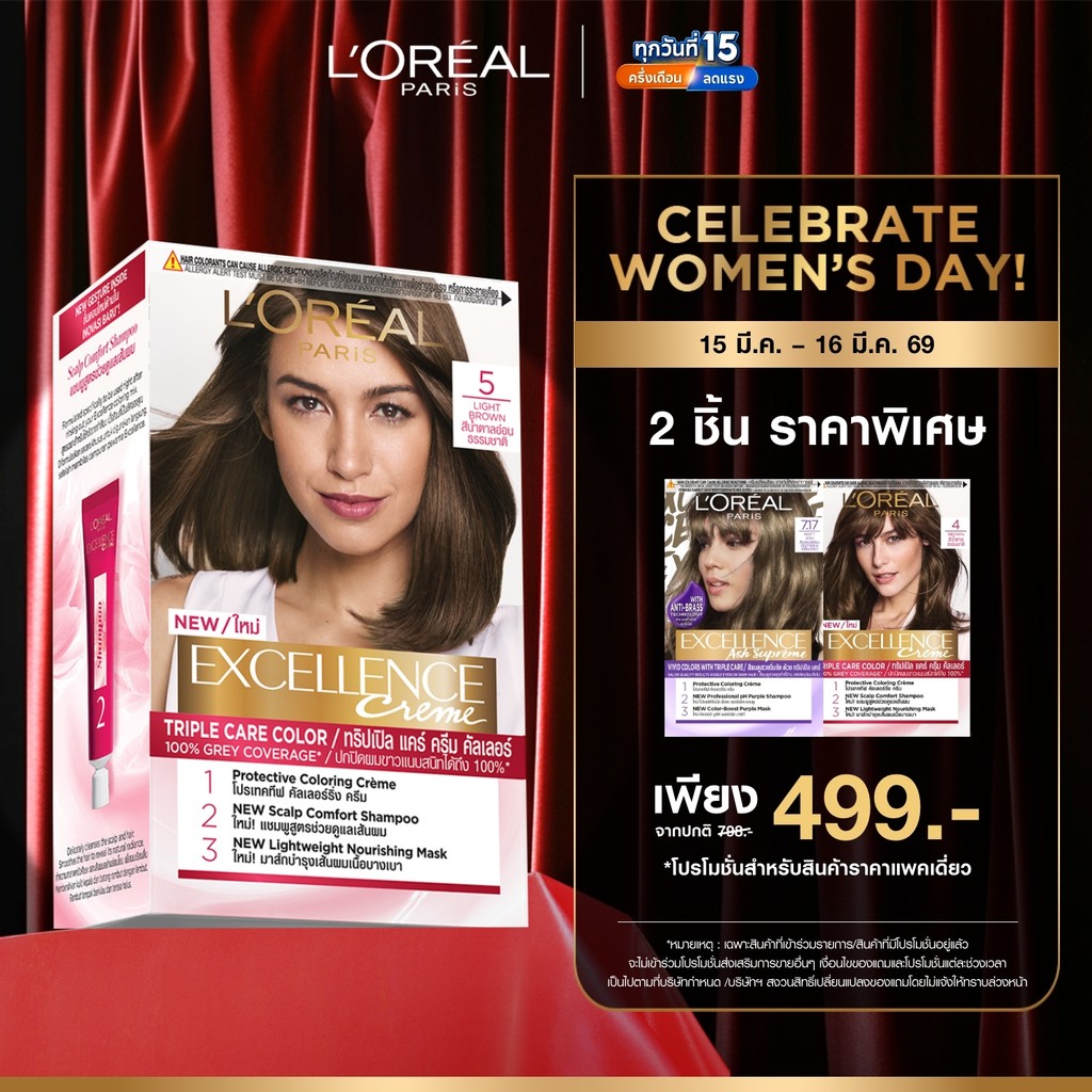 ลอรีอัล ปารีส L'Oréal Paris Excellence Crème ครีมเปลี่ยนสีผม ยาย ้อมผม สีย้อมผม สีผม เฉดสีธรรมชาติ ปิดผมขาวแนบสนิท