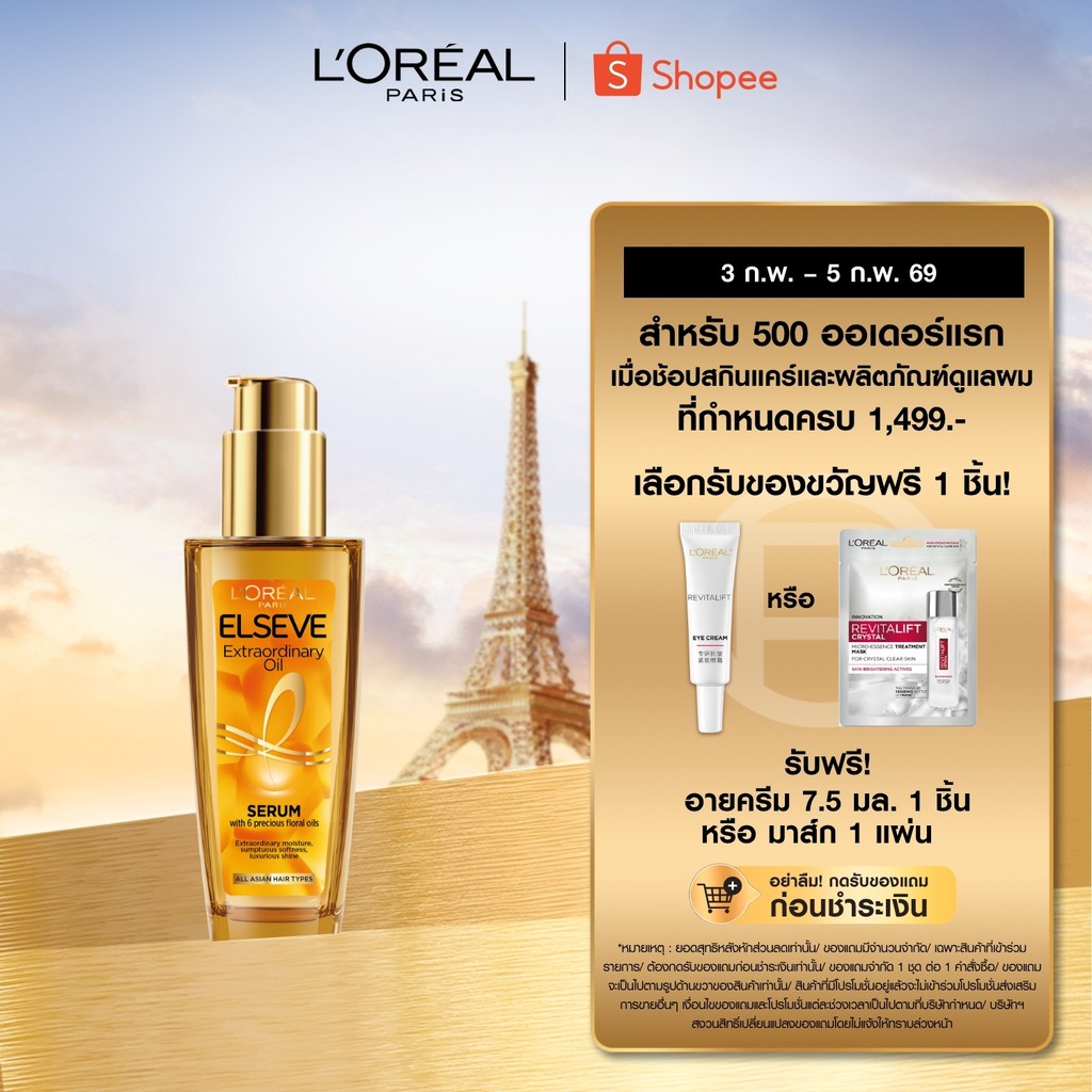 ลอรีอัล ปารีส L’Oréal Paris Elseve Extraordinary oil 100ml ออยล์เซรั่มบำรุงผมเงางาม ช่วยชุบชีวิตผมให้กลับมานุ่มลื่น
