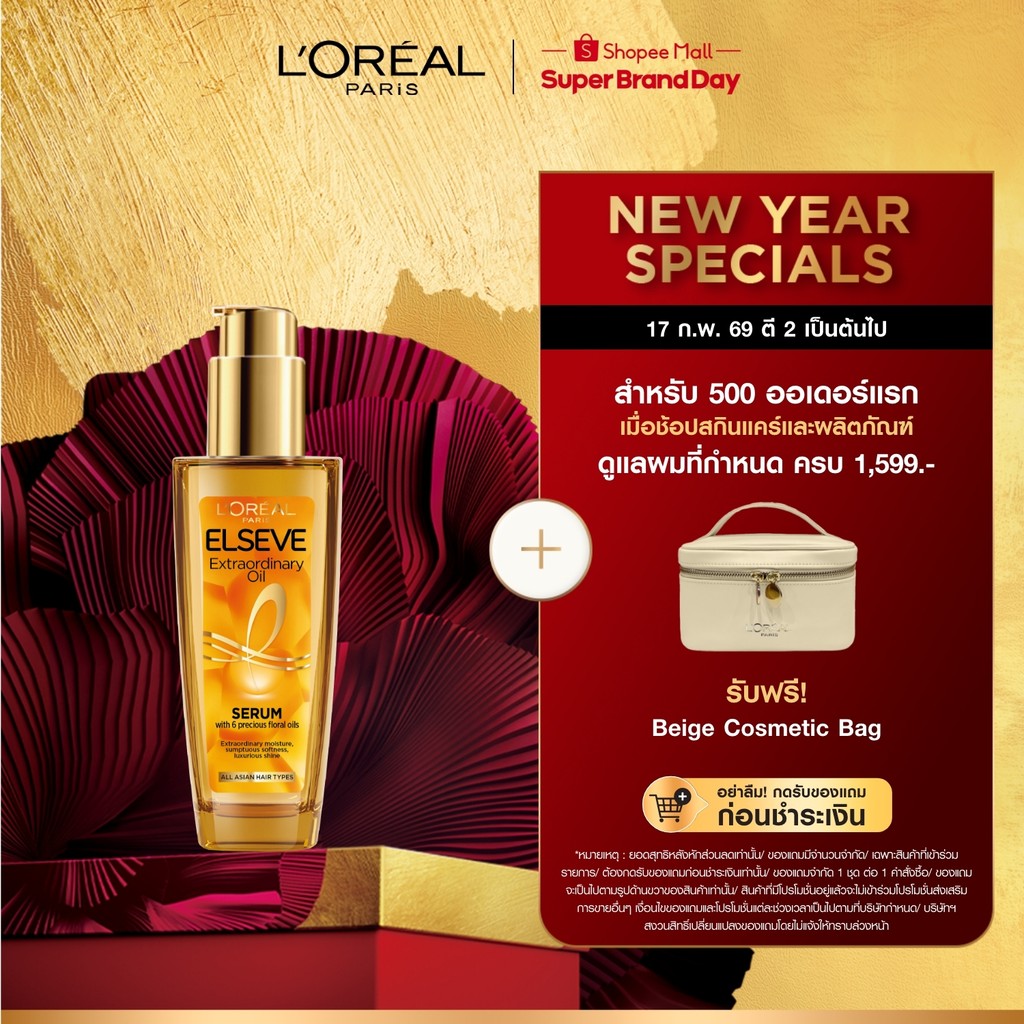 [ใช้โค้ดไลฟ์เหลือ 204.-]L’Oréal Elseve Extraordinary oil 100ml ออยล์เซรั่มบำรุงผมเงางาม ช่วยชุบชีวิตผมให้กลับมานุ่มลื่น