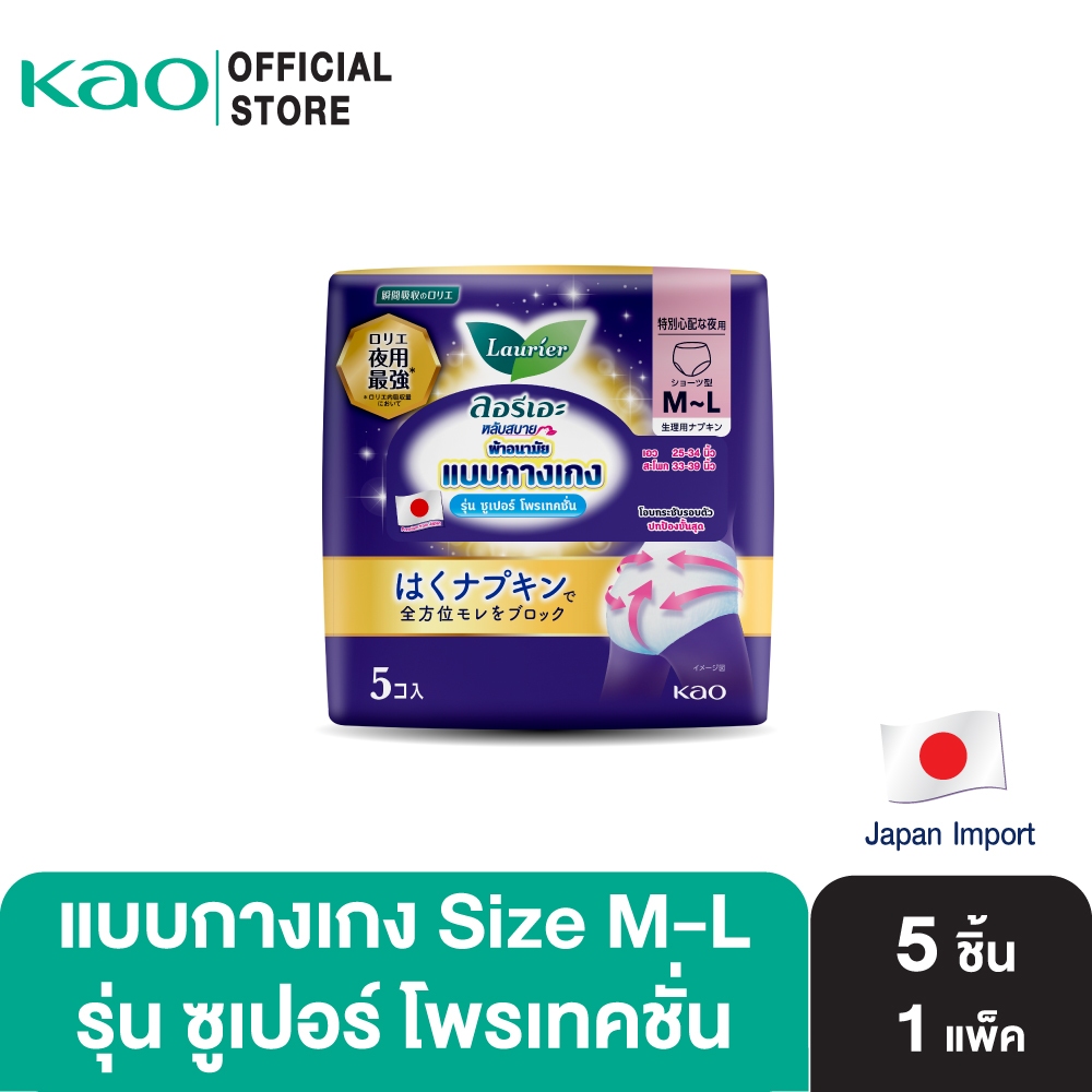 ลอรีเอะ แบบกางเกง รุ่น ซูเปอร์โพรเทค 5ชิ้น Laurier Pants Super Protection 5pcs. ผ้าอนามัยกางเกง 48 cm