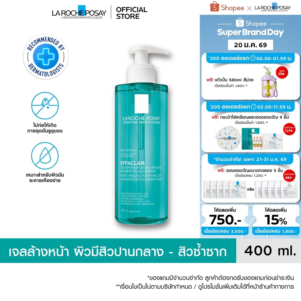 ลา โรช-โพเซย์ La Roche-Posay Effaclar Micro-Peeling Gel เจลทำความสะอาดผิว สำหรับผิวมันเป็นสิว 400ml.(โฟมล้างหน้า ลดสิว)