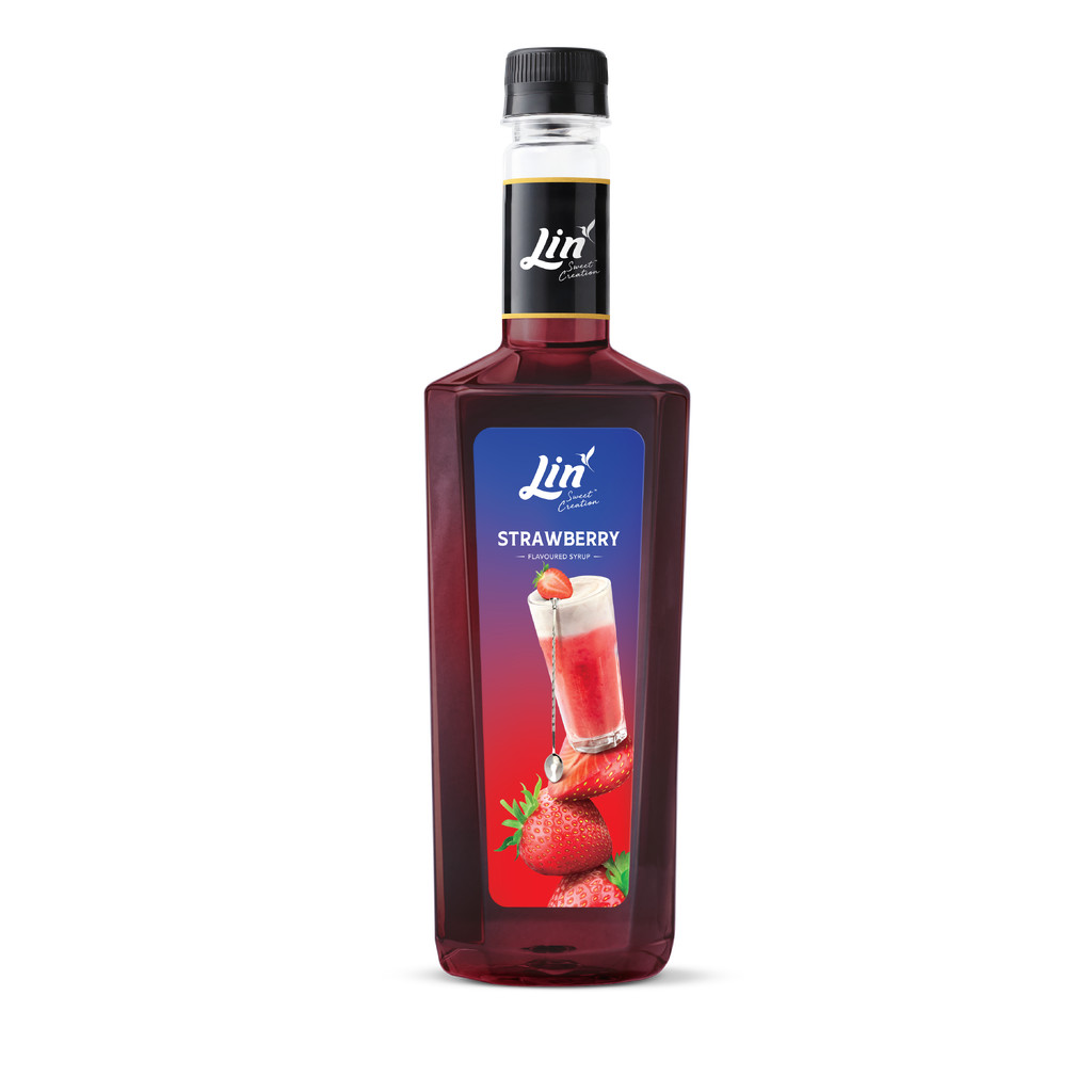 ลิน ไซรัป กลิ่นสตรอเบอร์รี่ น้ำเชื่อมสำหรับมิกซ์ดริ๊งค์ (ขนาด 750 มล.) Lin Fruit Flavored Syrups (Strawberry)