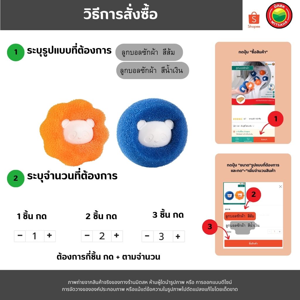 ลูกบอลซักผ้า ขนาด6x6cm มี 2สี น้ำเงิน, ส้ม Laundry Ball ลูกบอล ซักผ้า ฟองน้ำ กรอง ที่ดัก เศษ เส้นผม ขนสัตว์ มิตสห Hybaan