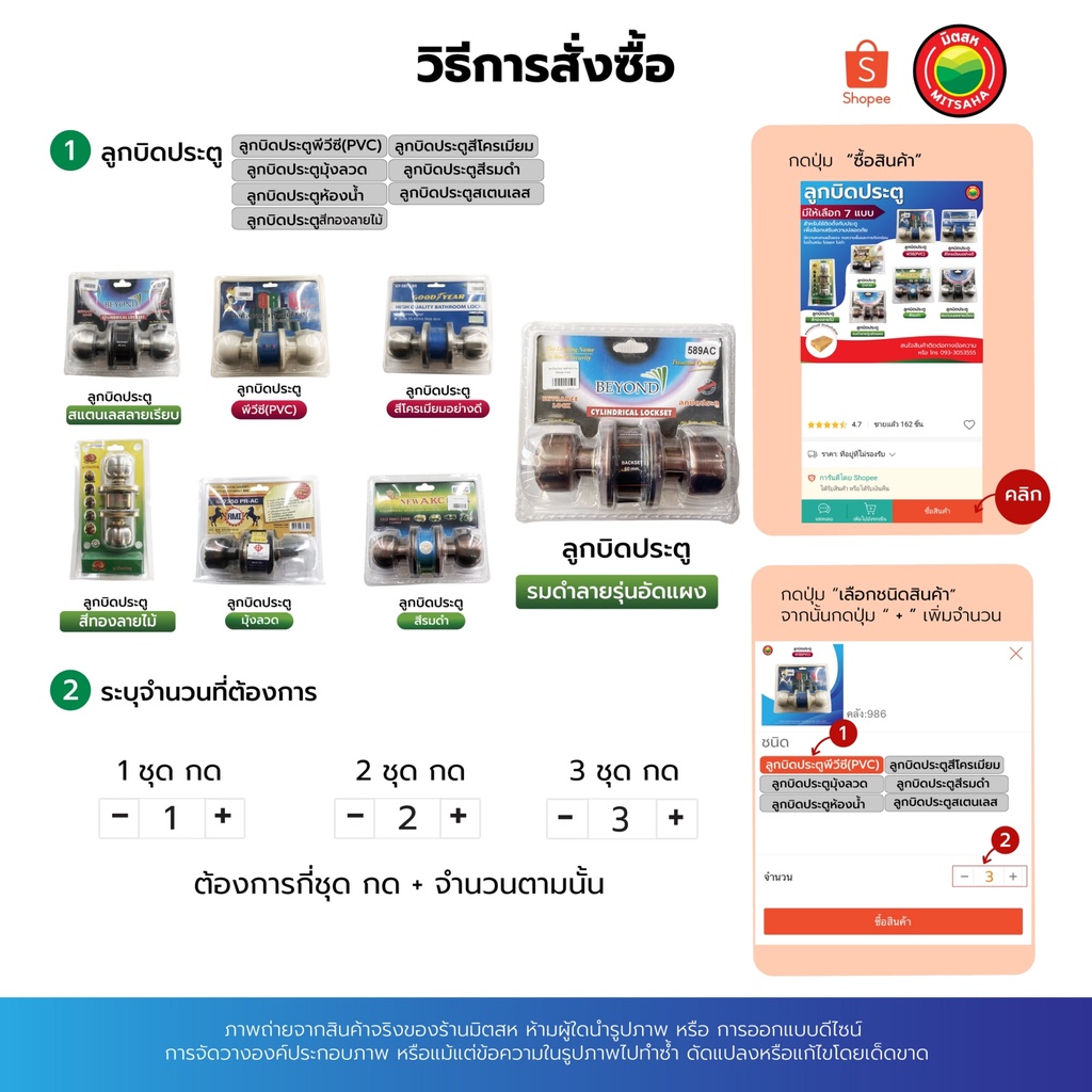 ลูกบิด ประตู สแตนเลส พีวีซี PVC สี โครเมียม รมดำ ขาว เงิน ENTRANCE KNOB มุ้ง ลวด ห้อง น้ำ นอน หัว กลม พลาสติก มิตสห