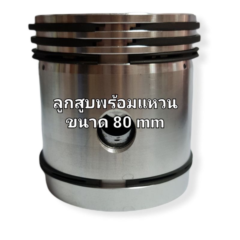 (80mm) ลูกสูบปั๊มลม ลูกสูบพร้อมแหวนลูกสูบ 4 วง ก้านสูบพร้อมสลัก ชาร์ปก้านสูบ ใช้กับปั๊มลม 3-5 HP