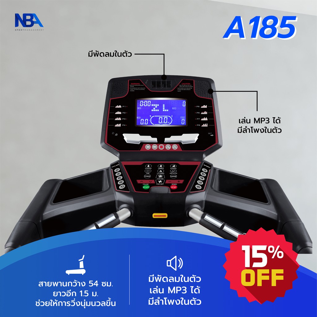 ลู่วิ่งไฟฟ้า Gorilla Teck A185 มอเตอร์ AC 3 แรงม้า ปรับความชัน 15 ระดับ พับเก็บได้