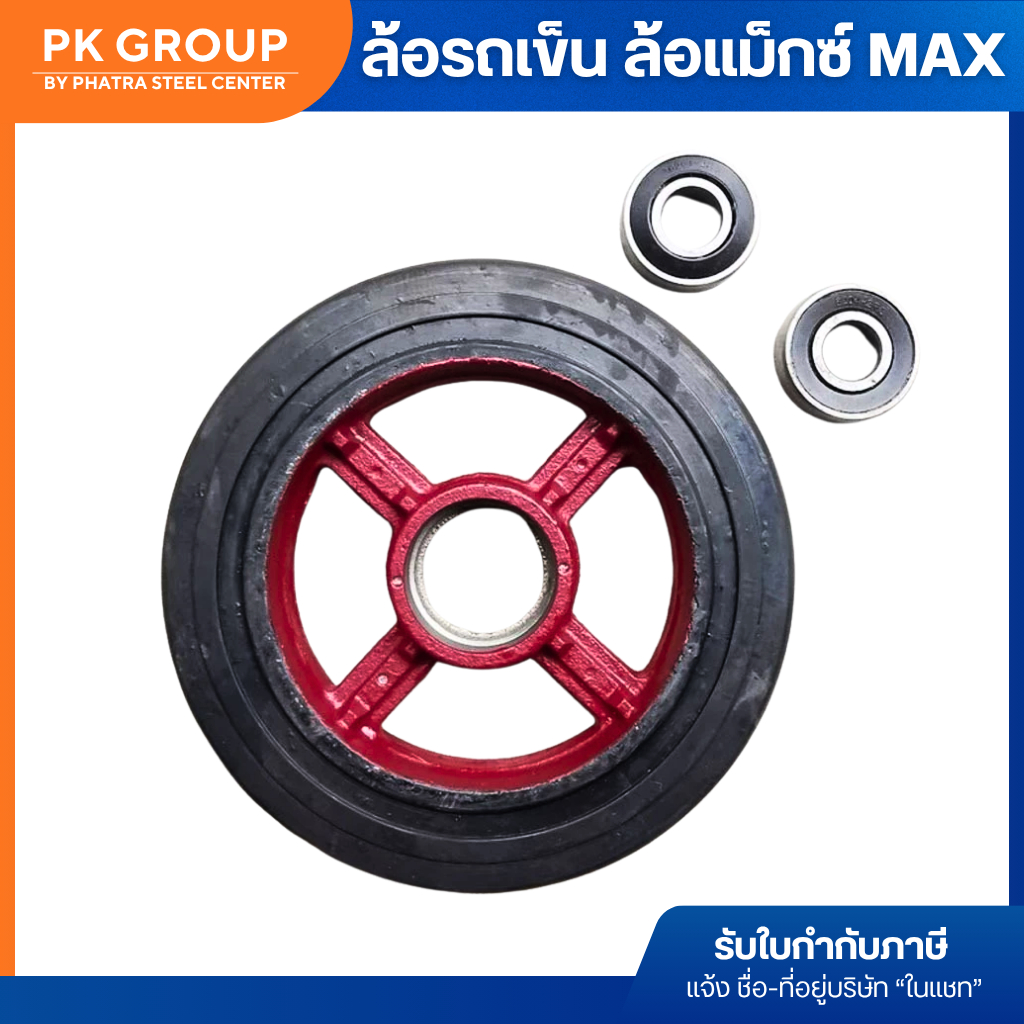 ล้อรถเข็น ล้อแม็กซ์ แต้มแดง ขนาด 6, 8, 10, 12 นิ้ว / ตลับลูกปืน 6204, 6304, 6205 (1 ชุด)