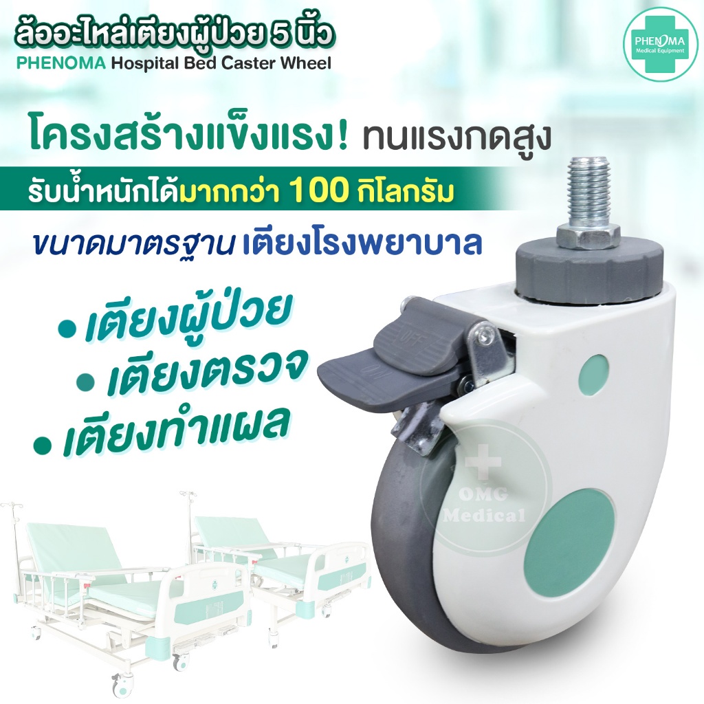 ล้ออะไหล่ เตียงผู้ป่วย 5 นิ้ว M15x25 mm. แบบมีเบรก เกลียวหมุน ล็อกล้อได้ PHENOMA ล้อเตียงโรงพยาบาล ขนาดมาตรฐาน (1 ล้อ)
