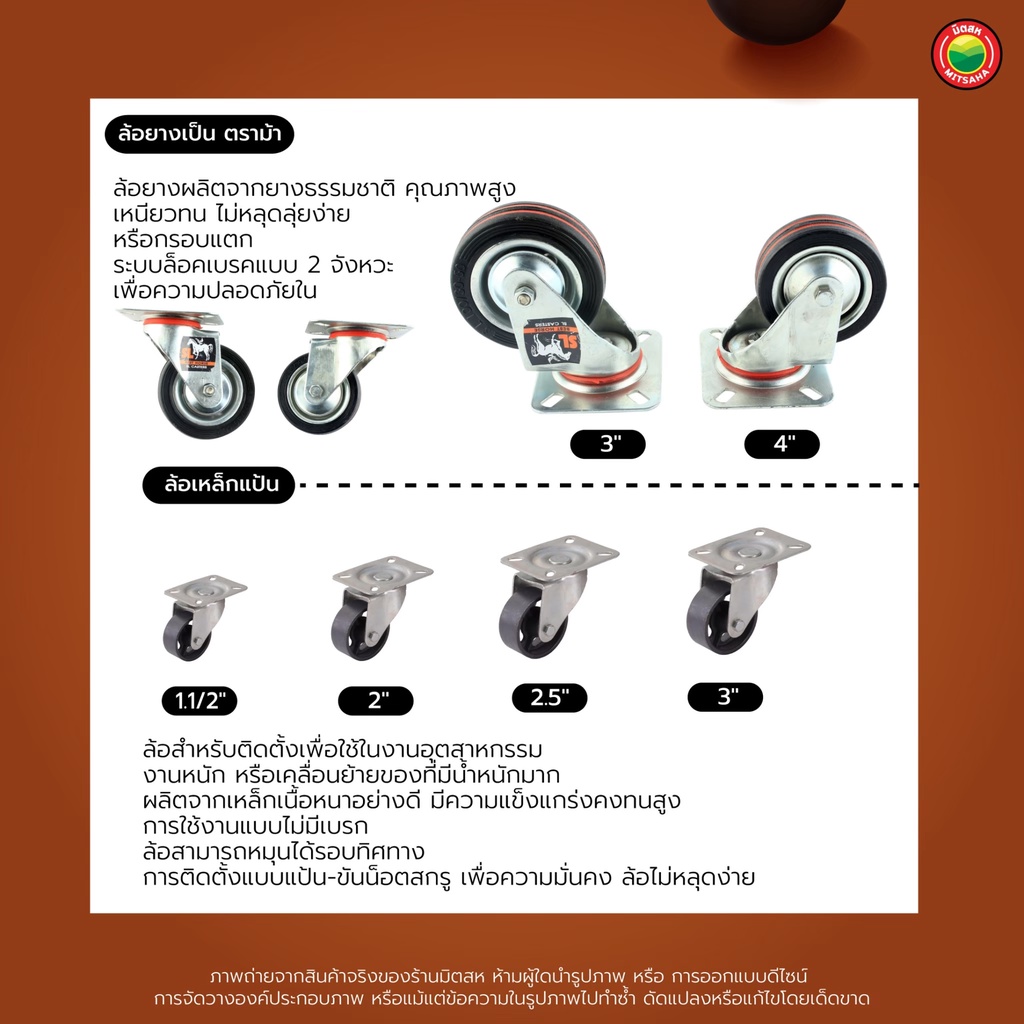 ล้อ แป้น ไนล่อน ขาว บอล สกรู ยาง เหล็ก พลาสติก WHEEL หมุนได้ มีเบรค ไม่มีเบรค ยางดำ ล้อเป็น ล้อตาย รถเข็น ตู้ มิตสห