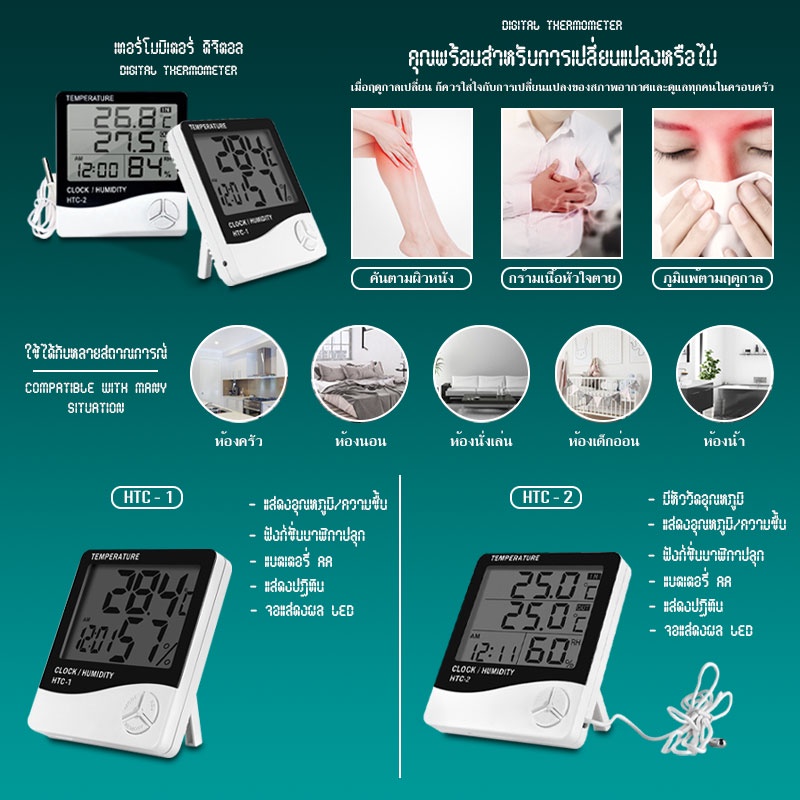 วัดความชื้น วัดอุณหภูมิ เครื่องวัดความชื้นและอุณหภูมิ ดิจิตอล ส่งไวจากไทย ขนาดเล็ก แบตเตอรี่ AAA 1 ก้อน (รวม) #B-056