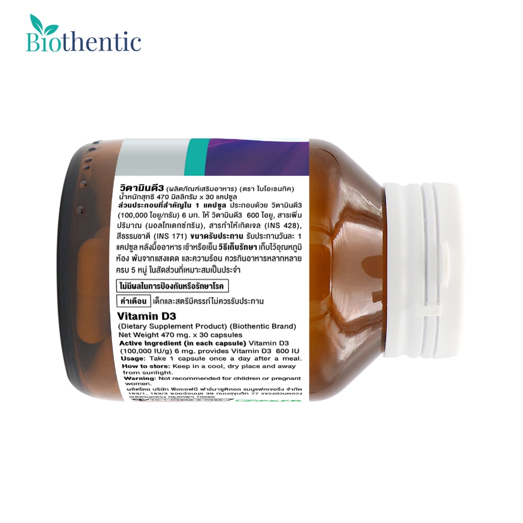 วิตามินดี3 ไบโอเธนทิค x 1 ขวด Vitamin D3 Biothentic วิตามินดี Vitamin D Vitamin D3 600 IU วิตามินดี3 600 ไอยู