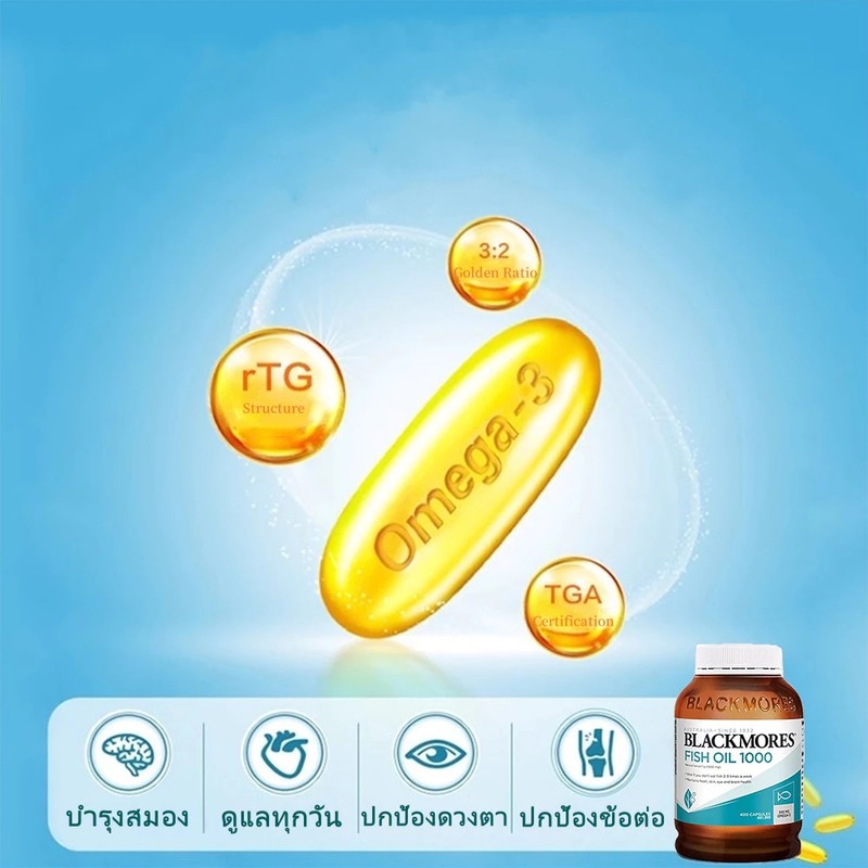 วิตามินเสริม Blackmores Mini Fish Oil 1000mg โอเมกา 3 แคปซูลเล็ก กลืนง่าย ลดอาการปวดข้อ 400 แคปซูล
