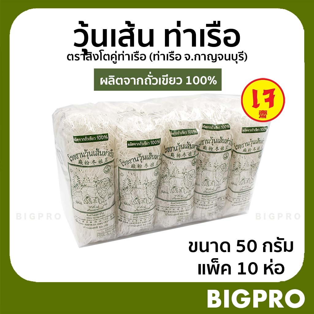 วุ้นเส้น วุ้นเส้นท่าเรือ ตราสิงห์โต เจ้าเก่า เจ้าดัง ผลิตจากถั่วเขียวแท้ 100% ขนาด 50 กรัม แพ็ค 10 ห่อ
