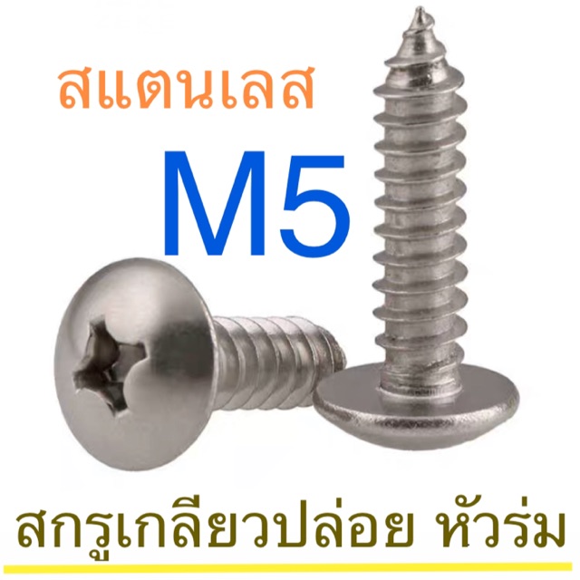 สกรูเกลียวปล่อย สแตนเลส หัว T หัวร่ม M5
