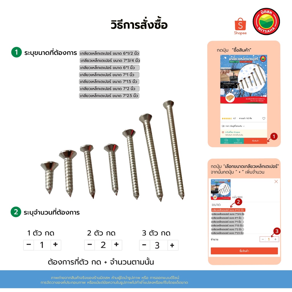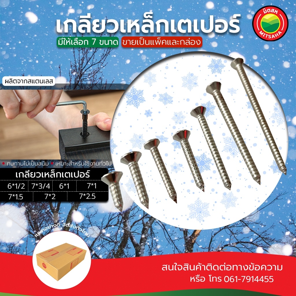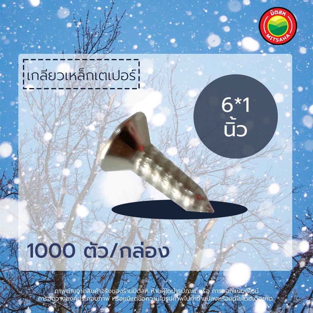 สกรู เกลียว ปล่อย หัว เตเปอร์ F ขายเป็นกล่อง 6x1/2,7x3/4,6x1,7x1,7x1.5,7x2,7x2.5" HEAD TAPPING SCREWS สแตนเลส ไม้ มิตสห