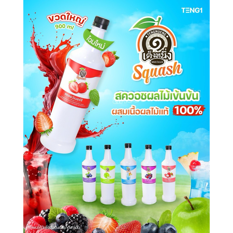 สควอชน้ำผลไม้ เต็งหนึ่งเข้มข้น พร้อมเนื้อผลไม้ปริมาณ900ml