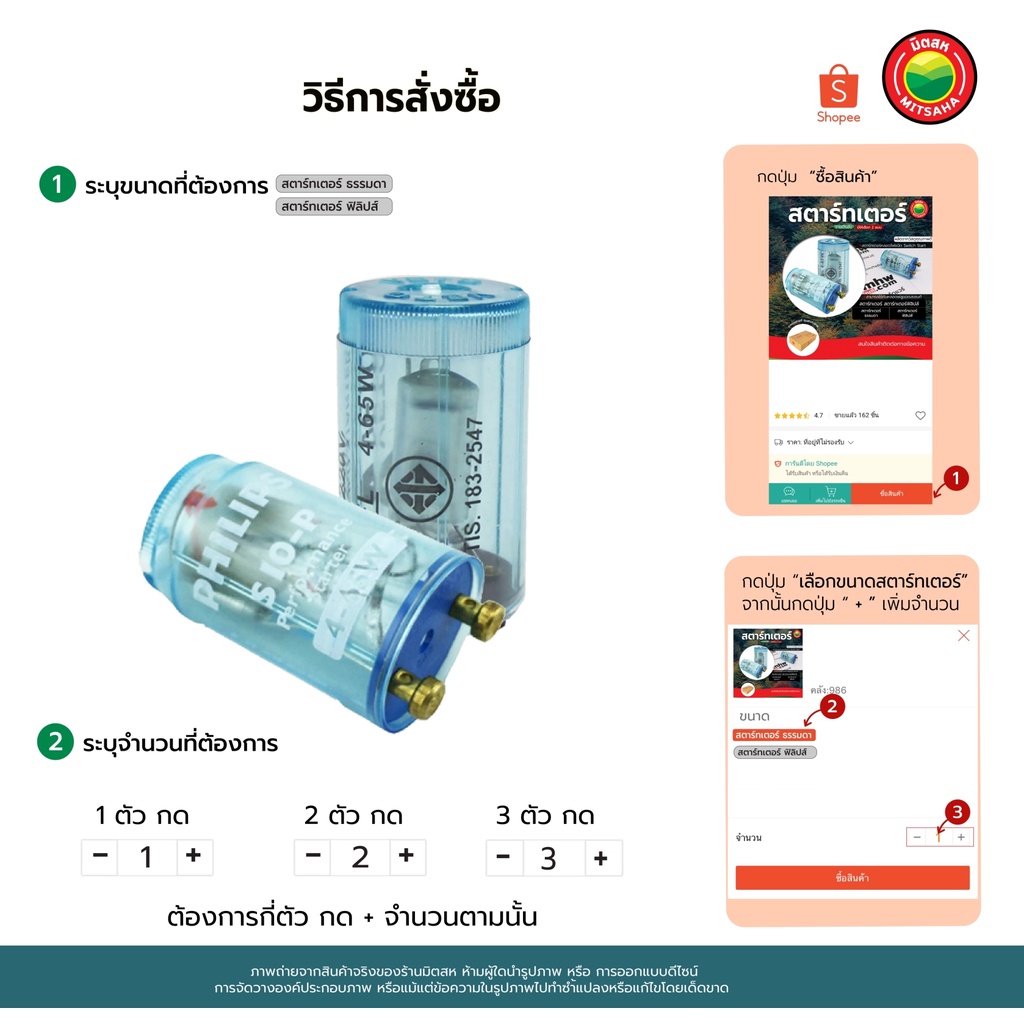 สตาร์ทเตอร์ PHILIPS รุ่น S10-P 4-65W สีฟ้า และ Fujilamp รุ่น FS10 STARTER LIGHT BULB (ขายเป็นตัว) หลอด ไฟ บัลลาสท์ มิตสห