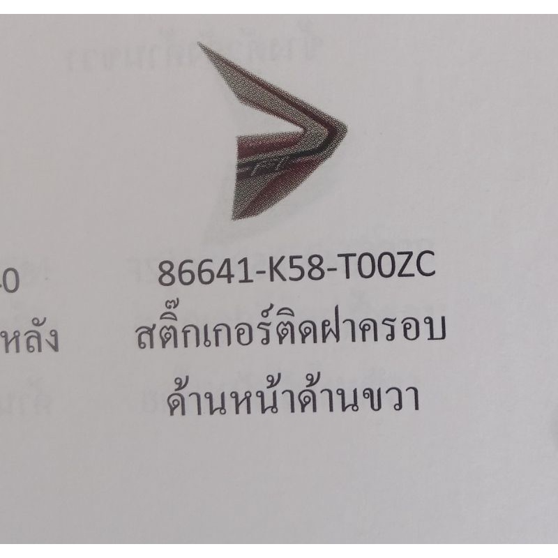 สติ๊กเกอร์ติดบังลมซ้าย ขวา เวฟ110i ปี2015-16 ติดรถสีขาว-ดำ,1คู่ (86641/86642-K58-T00ZC)