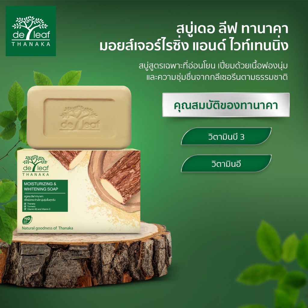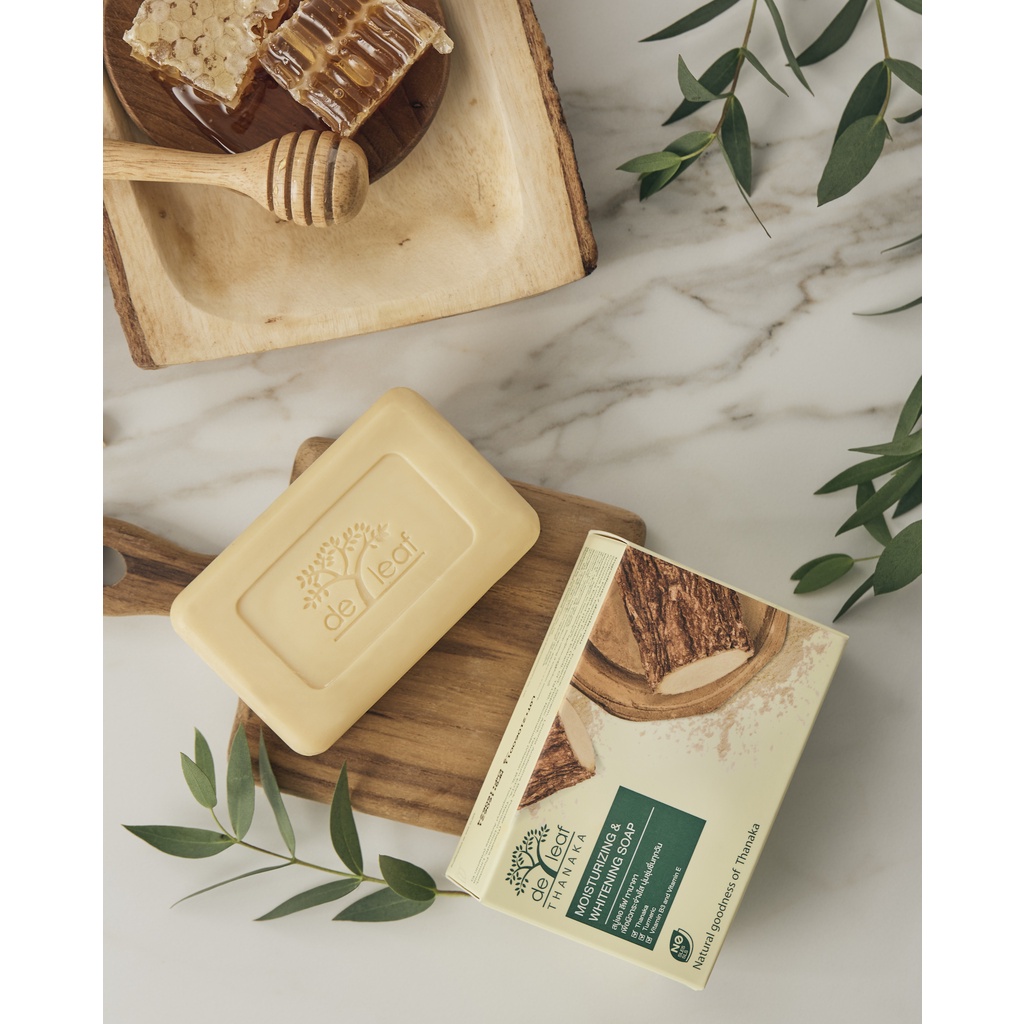 สบู่เดอ ลีฟ ทานาคา มอยส์เจอร์ไรซิ่งแอนด์ไวท์เทนนิ่ง 100กรัม De Leaf Thanaka Moisturizing