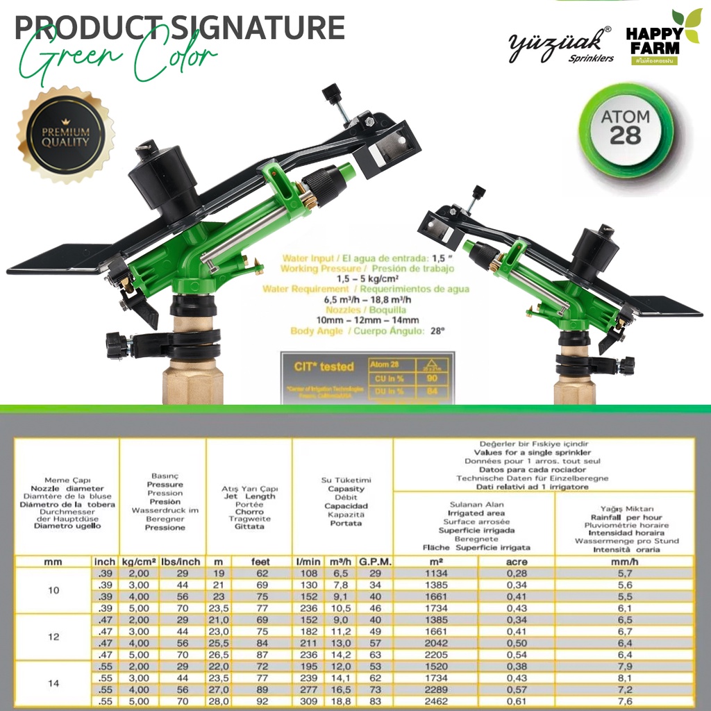สปริงเกอร์ Atom 28 ยี่ห้อ Yuzuak ขนาด 1.5 นิ้ว Green Color แบรนด์ยุโรปแท้